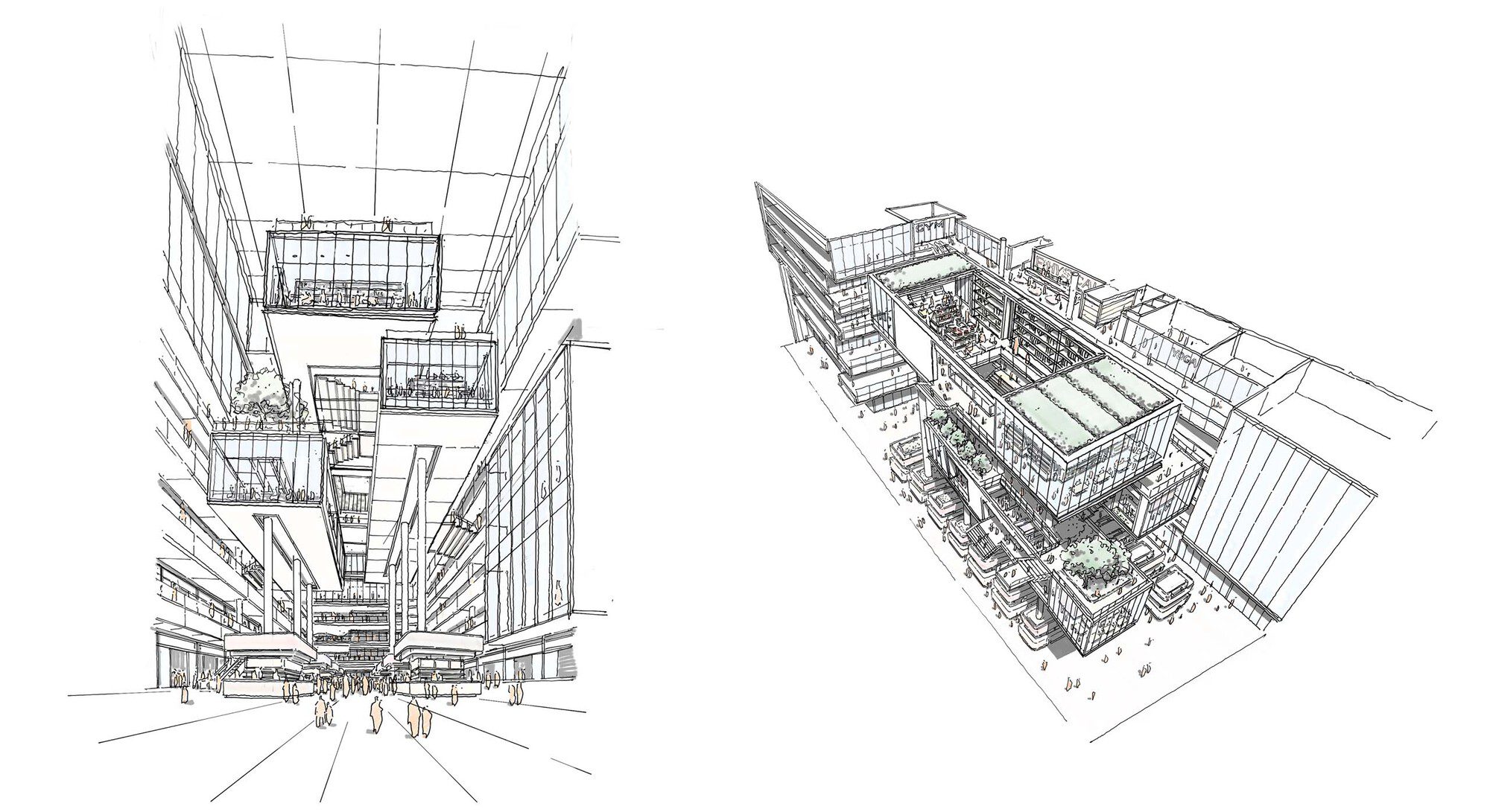 Jointly led by two Design Principals, Ted Givens, and Chin Yong Ng, the concept for this new development breaks away from the conventional shopping mall design and instead draws inspiration from a traditional market square, creating a vibrant central meeting place for the community.