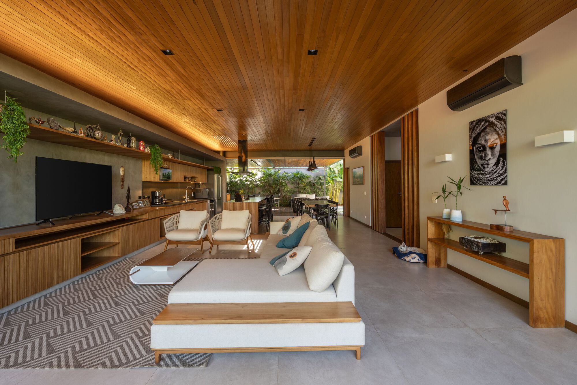 The wood, present in the frames, carpentry, and finishes, creates a sense of coziness, while the landscaping with native plants adapted to the coastal climate brings freshness and color, further integrating the house with nature. “The idea was to create a house that is an extension of the garden, with materials that harmonize with the surrounding landscape and ensure a constant experience with nature,” concludes Thiago Brunini Pitta.