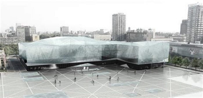 Art always exists in a social, economic and aesthetic context. Space devoted to art will always have its magical aspect because art functions in a given time but also beyond it, giving a signal and a promise of eternity. A museum of art, located at a busy junction in the center of the capital, by its very location, stresses the importance of the context in which art is created and in which it is perceived. However, an artist who wants to create a work of art must be free, also from economic conditions. The legible division between commercial areas [functions] and the space devoted to art, which is at the same time organically connected, is a symbol of dynamic and specific connections of these ideas in the designed Museum of Modern Art in Warsaw. Commercial areas constitute a special stylobate of the building, which is the base of a precious crystal, housing spaces devoted to art. Both parts are connected by an elevated forum, which gradually carries us away to the world of abstraction. It allows for the proper perception of works of arts and emphasizes the distance necessary for conscious participation in a spiritual performance.