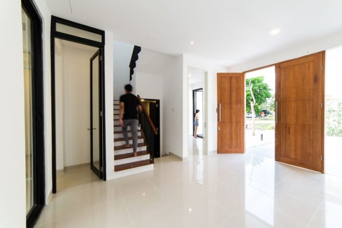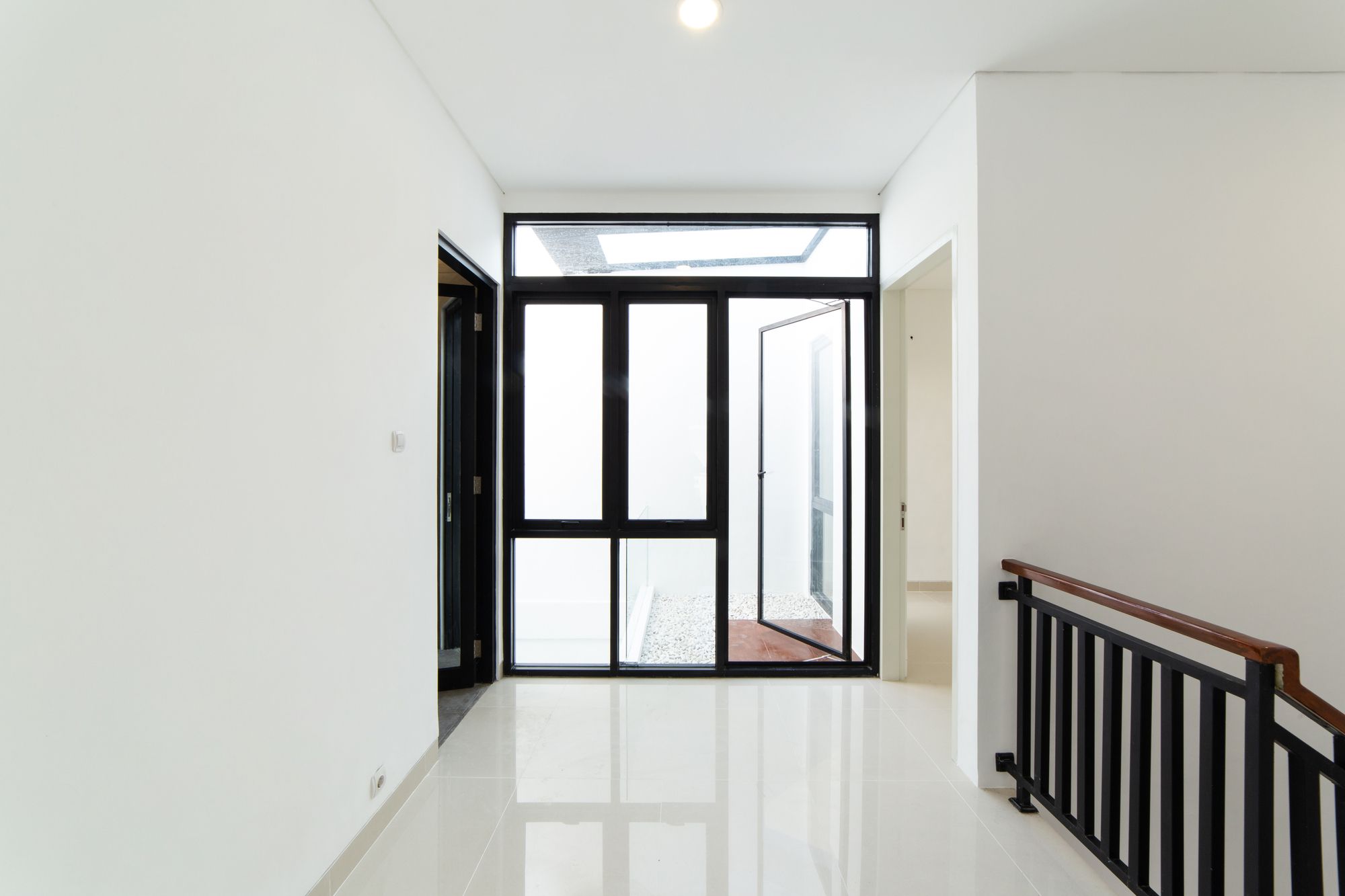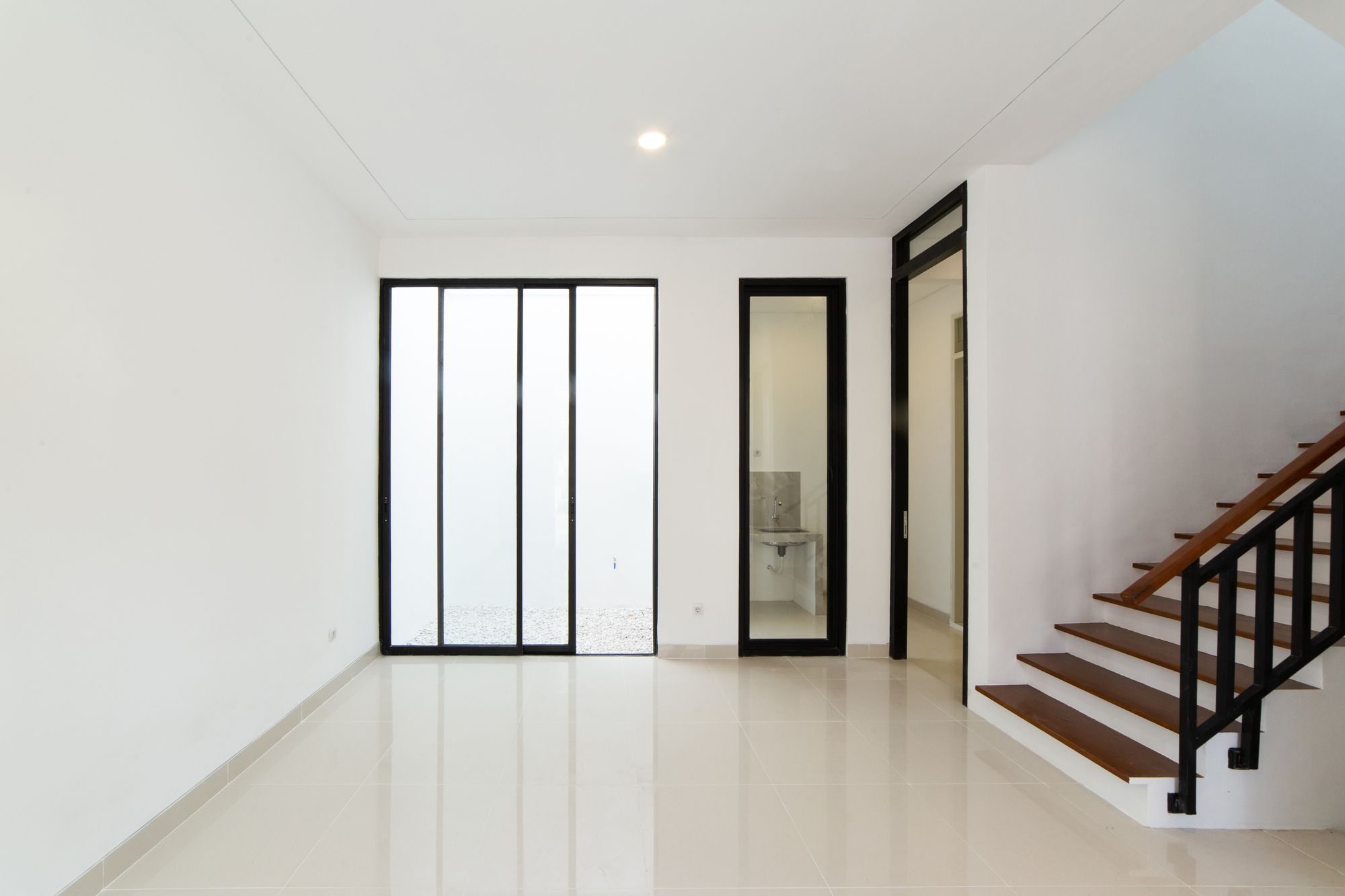 Despite the project extensive program needed, the architect avoided a full house design mass. Instead giving an open space in backyard so the light can enter the building. Areas of the house are vertically composed into two level, inside the house there’s so many window to prevent heat because humidity in Indonesian climate. In conjunction with program and room configuration, the architect also use aesthetic element to support a calming atmosphere throughout the house. Wooden stair floor, wooden ceiling, white wall all induce this atmosphere. Using white coral stone to cover the landscape allow occupant to feel calm and refreshed with the clean view. Together with the greenery surrounding the house, these details succeed in creating an ambient and serene escape from chaotic city.