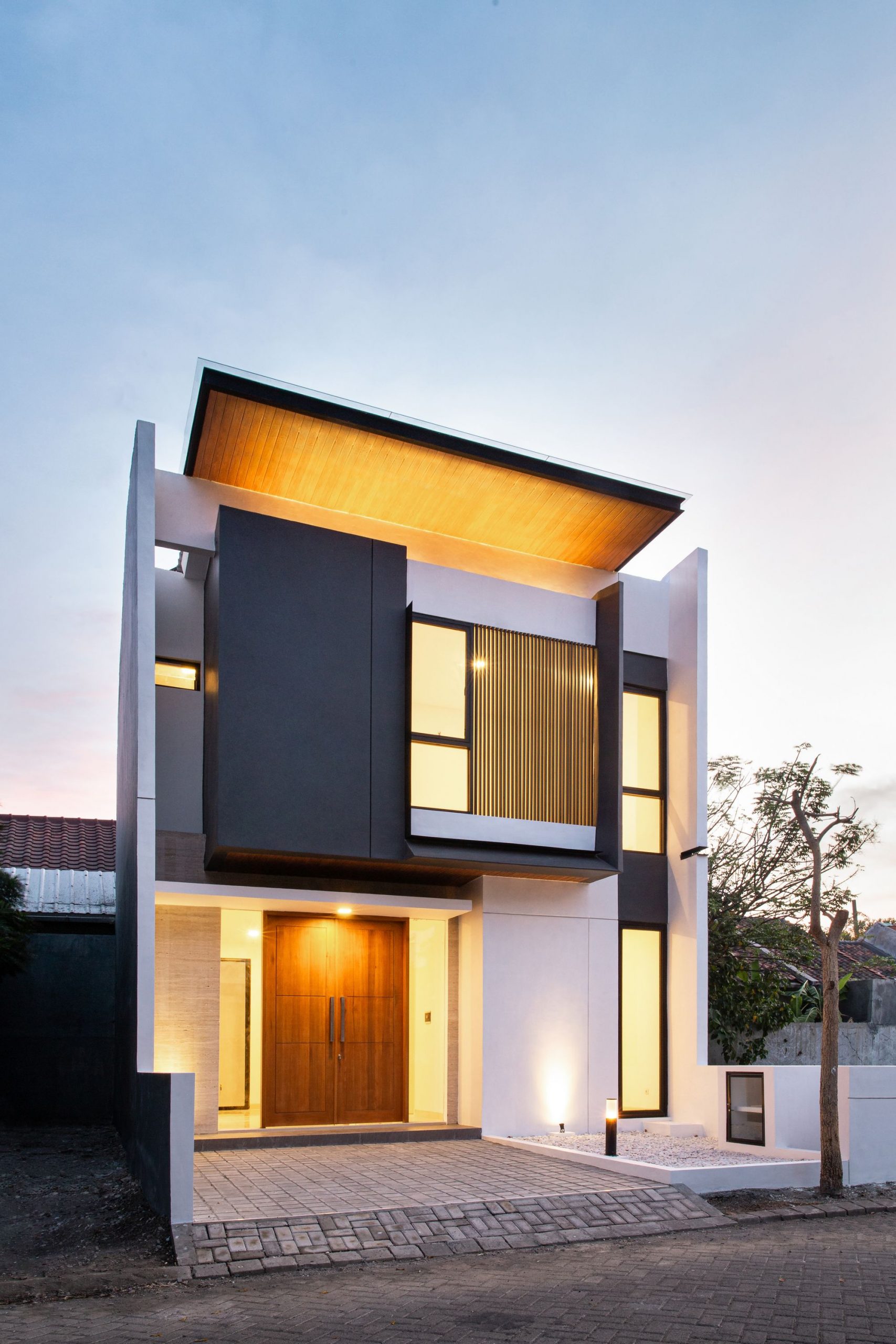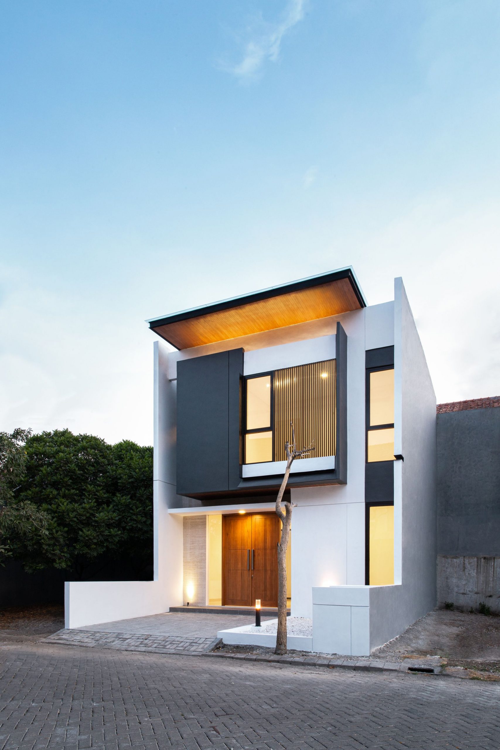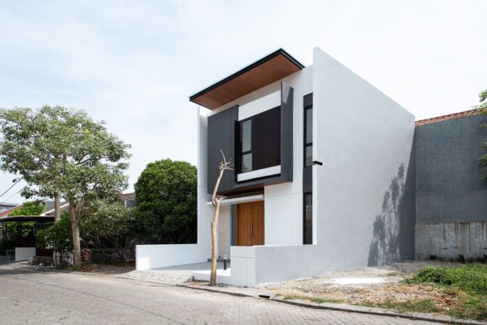 MONOHOUSE Chapter I is located in the north west city of Surabaya, which is colloquially known as Surabaya Kota Pahlawan (a Heroes City). The site is situated on Citraland, with its oriented north side sitting. The site is 7 m x 12 m, just a small site with no building right or left next to it. Contemporary urban house is often sleek in appearance and designed with clean – cut angles. Following this trend toward minimalist chic, many architect take a clean and simple shape as an arrangement of geometric forms.