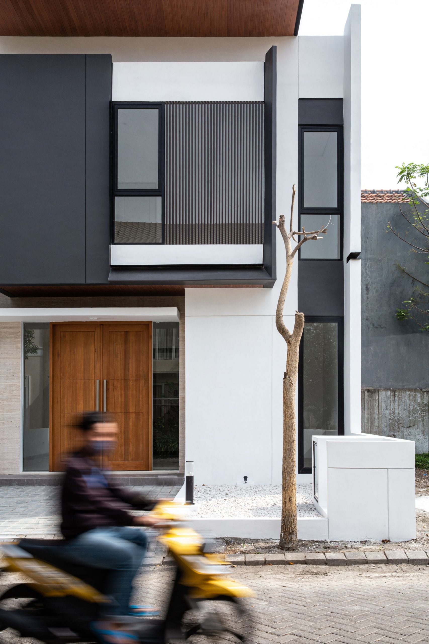 Instead of relying on decorative ornaments, these house flaunt fascinating compositions, finished with simple materials. The design expression of MONOHOUSE can be considered an example of this approach. In response to the context and potential hot sunlight path, monostudio designed the house with a grating or grid façade to protect the occupants.