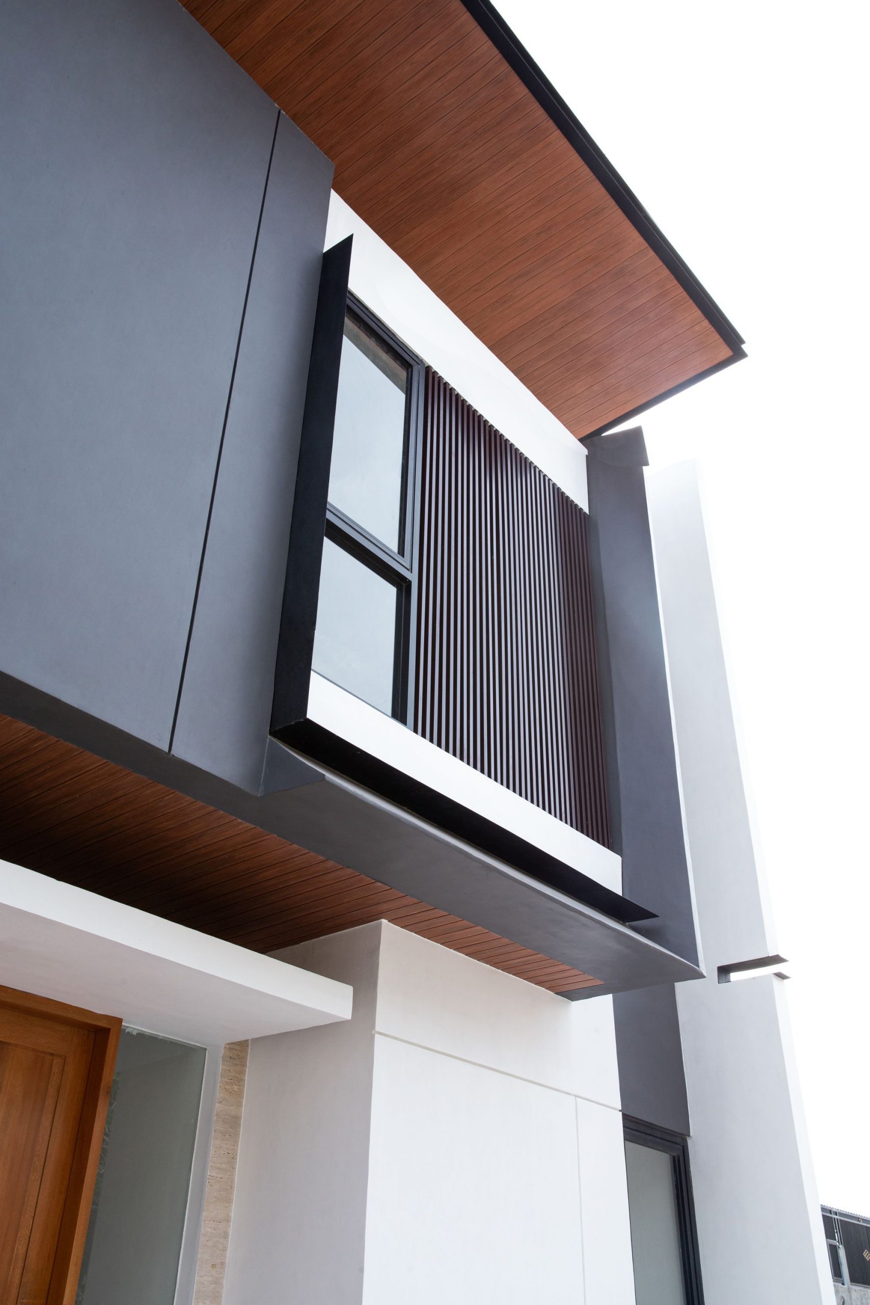 The aluminum grid signifies a sense of transparent in the building and the modern urban area. The canopy have been designed with wood plastic composite material as a roof and protection from the sunlight. The massing seemingly addictive logic is balanced with the subtracted appearance of deep – set window opening. Overhanging volume are either supported by a wood plastic composite or intersected with natural stone on the lower floor.