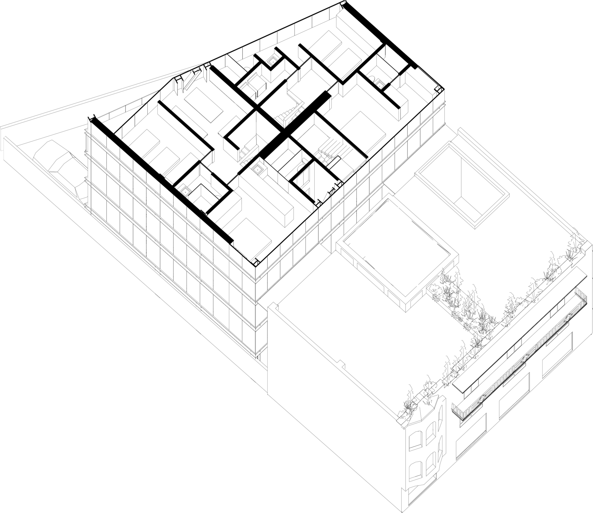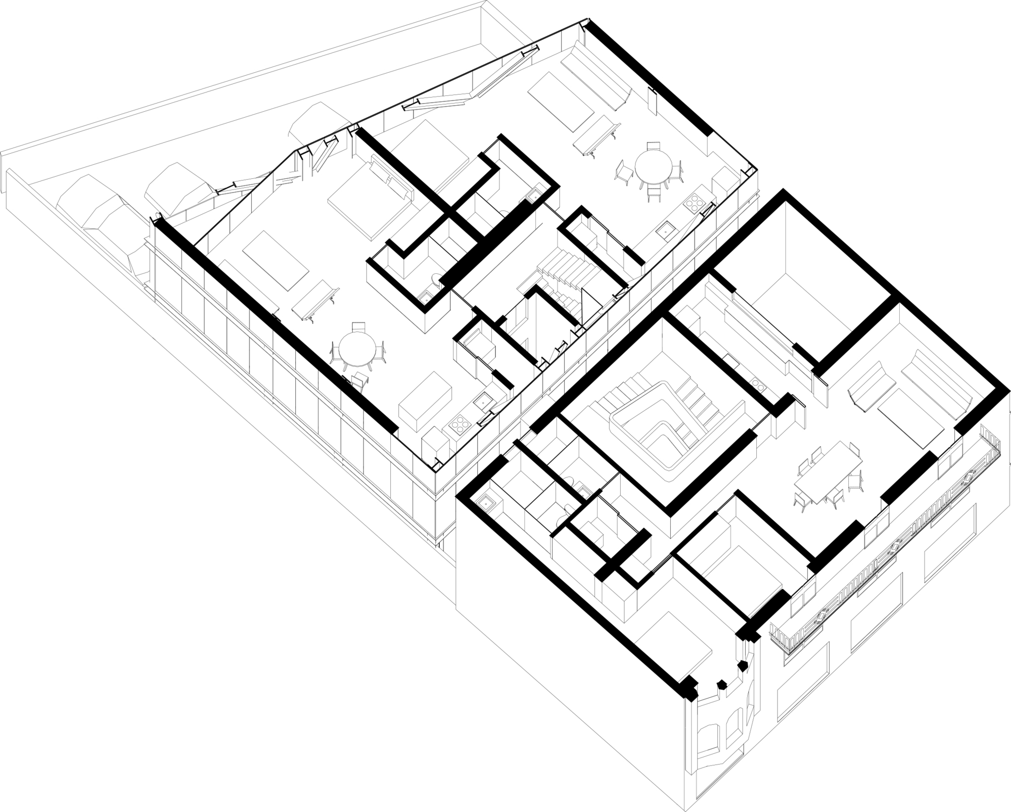 It has four studios with one bedroom, four two-story-high apartments with three bedrooms each, and a single level apartment with two bedrooms. The rooftop of the original house is repurposed into the terrace space for apartments located on the third level. The result is a coherent eleven apartment complex where the magnificence of the past has evolved to satisfy the demanding lifestyles of the contemporary 21st-century cosmopolitan citizen.