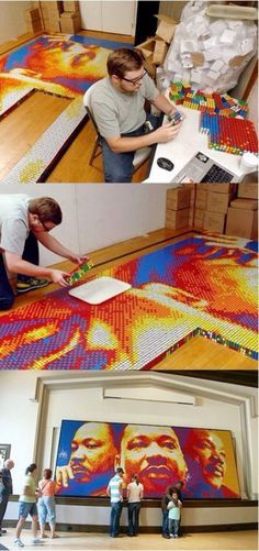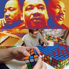 As a designer by day, the Rubik’s Cube mosaic was just a “crazy idea,” not a career move. However, after spending 40 hours assembling a monumental mosaic of Martin Luther King Jr., Fecteau has gotten much attention. 4,242 Rubik’s Cubes were used to construct the half ton piece.