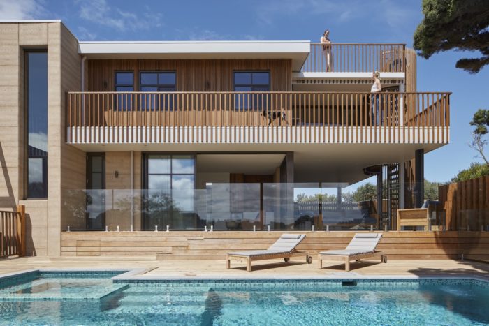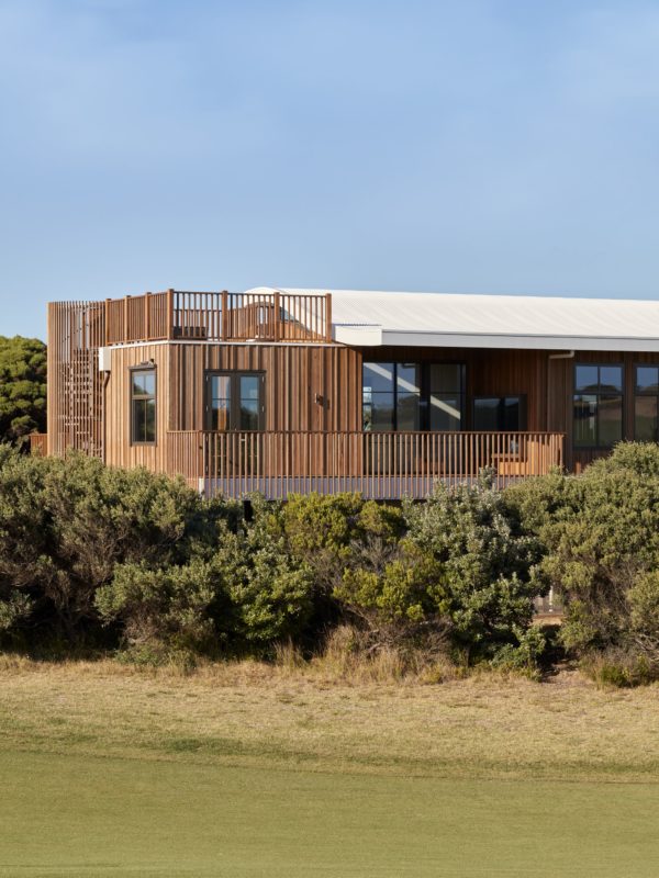The brief challenged the architect to create a subtle structure connected with the environment while maximizing the views, leading Kirby to the counter-intuitive move of hunkering the house into the landscape. “We worked out we could dig into the site, earthing the house, while still getting ocean and golf course views by using multiple decks,” said Kirby, adding “Nestling into the site, we related the levels of the decks to the Moonah tree’s height and form, fulfilling the connections with earth, sea and air. “