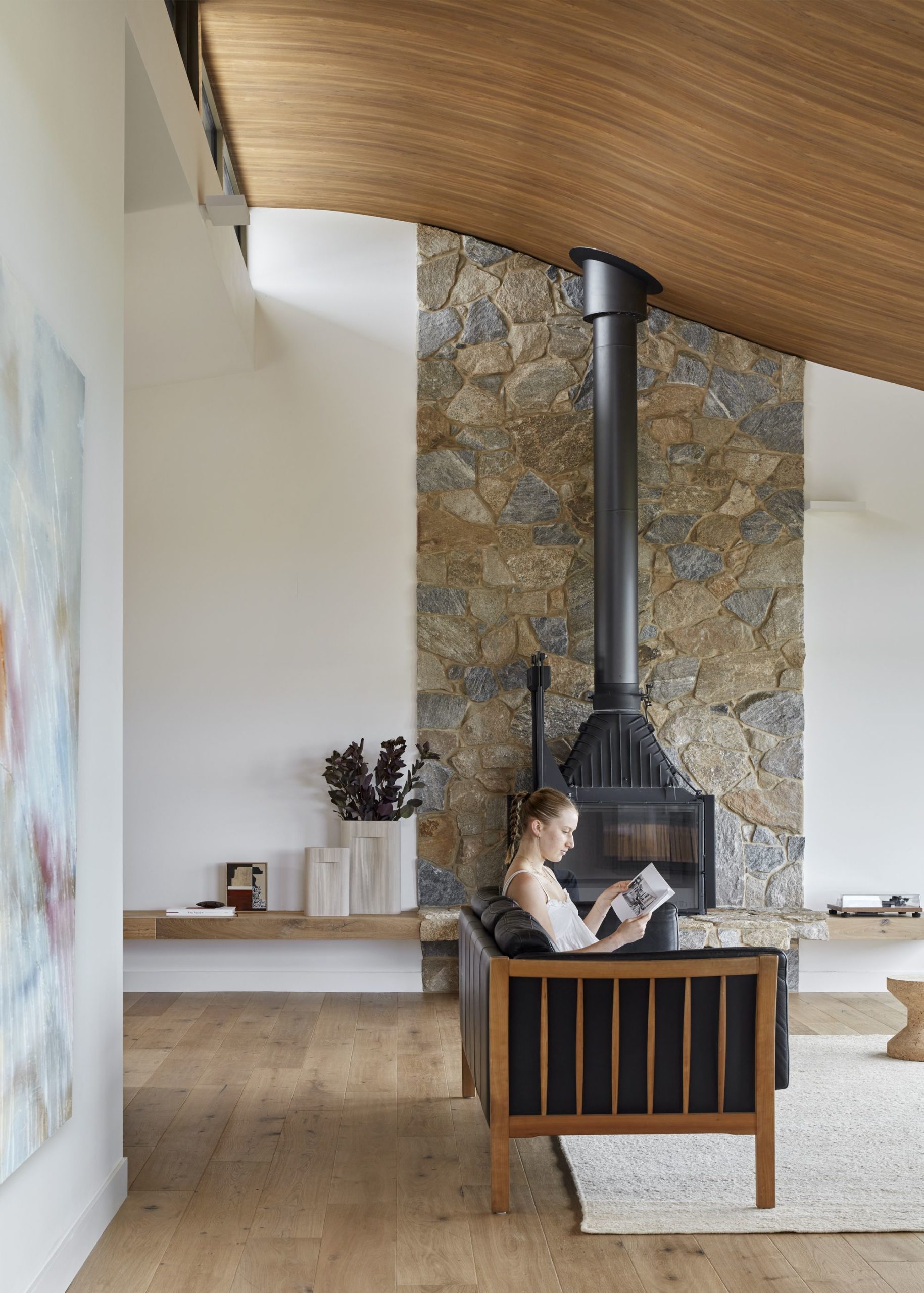 The tactile materials, recycled elements, rammed earth walls, and the way the house hugs the site all contribute to the home’s unique personality. “This is not a huge house, but it surely encompasses a lot. We tailored so many choices that this humble house is very bespoke and closely reflects the clients and their lives.”