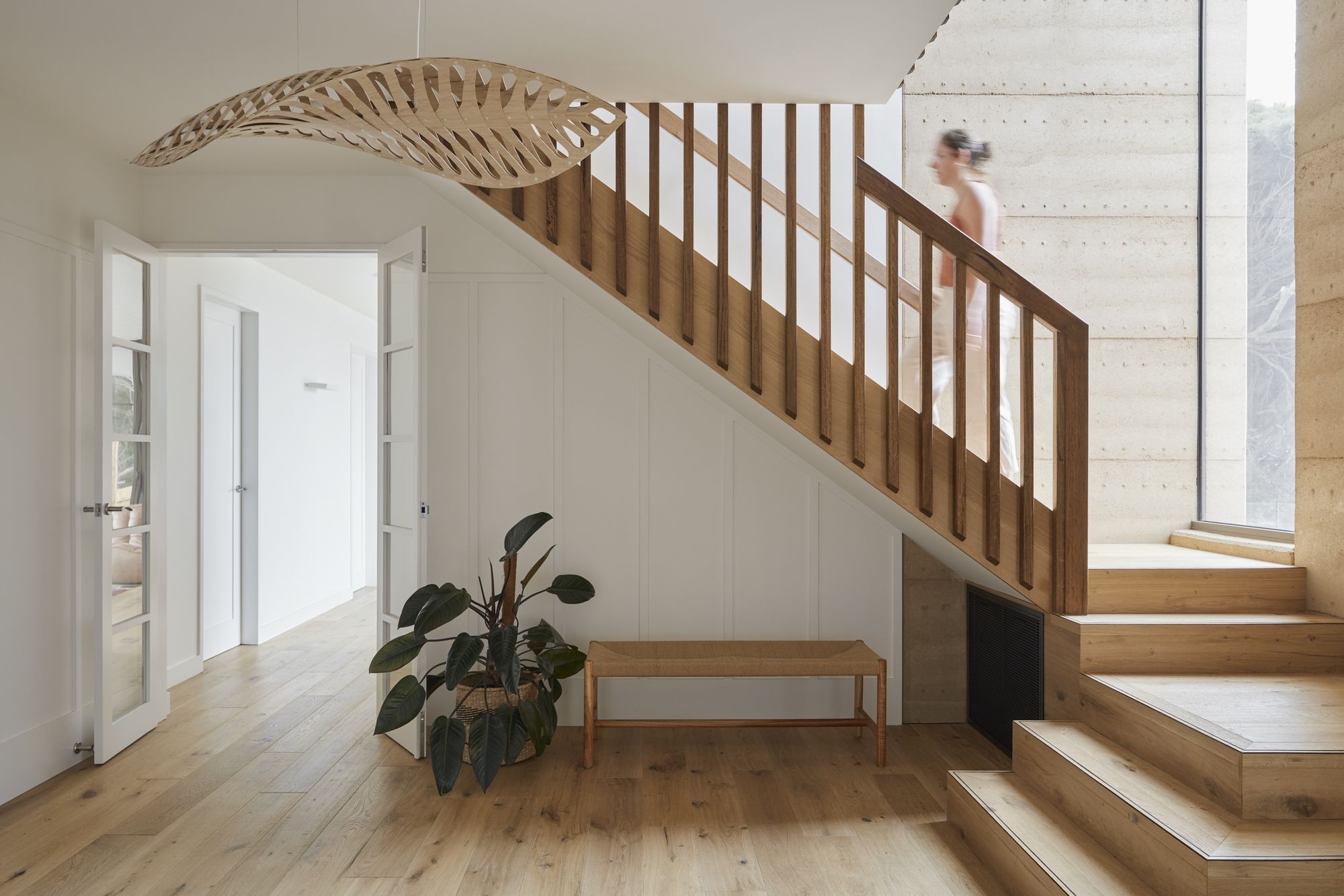 Because the thick earth walls moderate temperatures year-round, the house is cozy and comfortable. “The builder didn’t just build; he built masterfully. The finessing of the detail is extraordinary. The builder’s entire focus was to build to the architectural intent. He added to the entire process, often suggesting fresh ways to construct the details we had drawn”, said Kirby. Local houses with classic beachy weatherboards and boat shed cladding inspired other material selections. “We love that Barwon Heads has a sleepy hollow vibe. We wanted that gentle mood to flow into the house, making it feel relaxed, snug, and respectful of the town and the environment.”