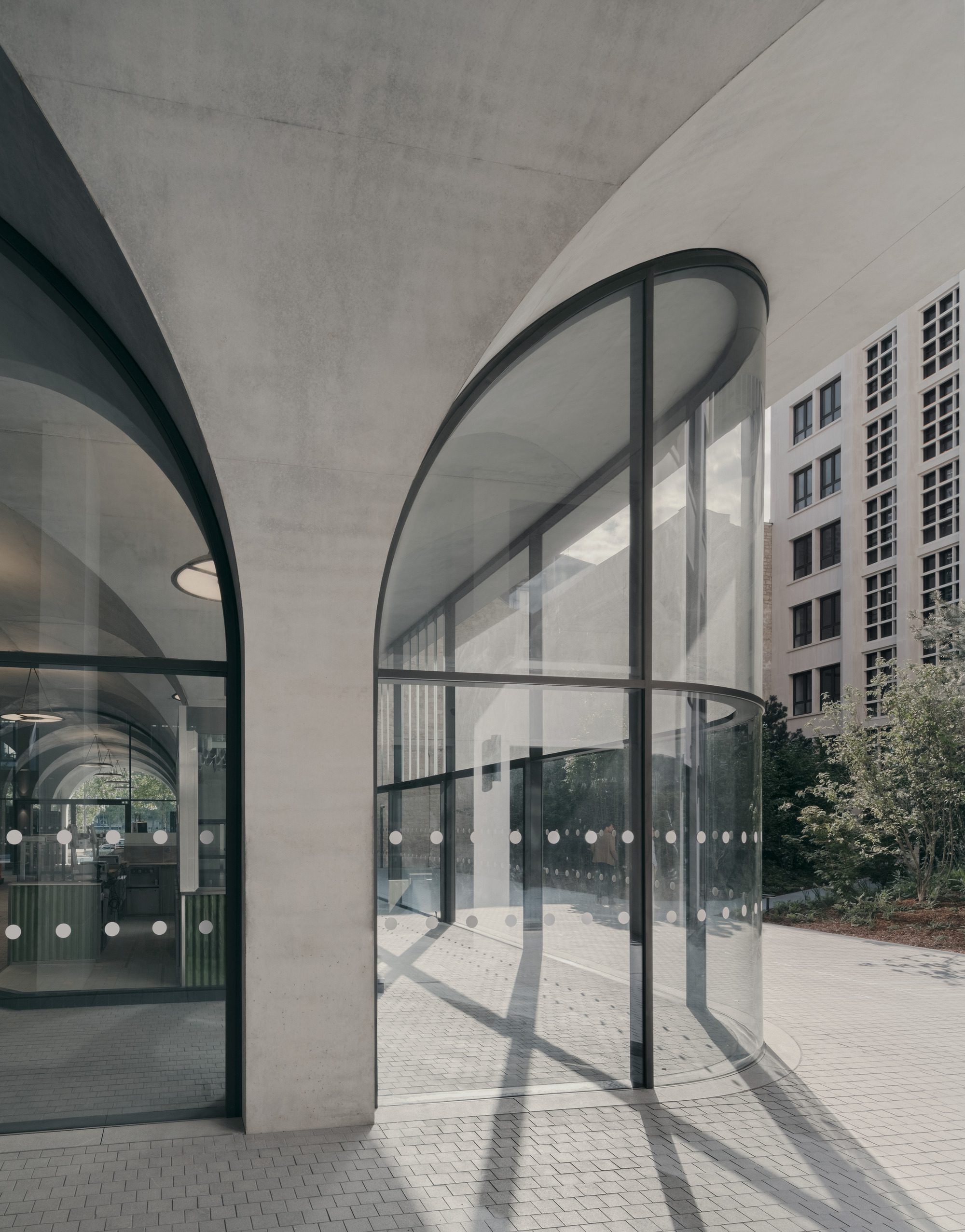Two new building volumes facing the boulevard and the River Seine, which mediate between the scale of the existing and neighbouring buildings, contribute to the repair of the city. The volumes are raised above the ground to create a new public axis that provides a passage from the boulevard to the River Seine. Load-bearing, vaulted arcades characterize this passage at ground floor level and act as a counterpart to the stringent column grid of the existing ensemble. The arcades establish an inviting entrance gesture to the campus, guiding passers-by into the interior of the complex.