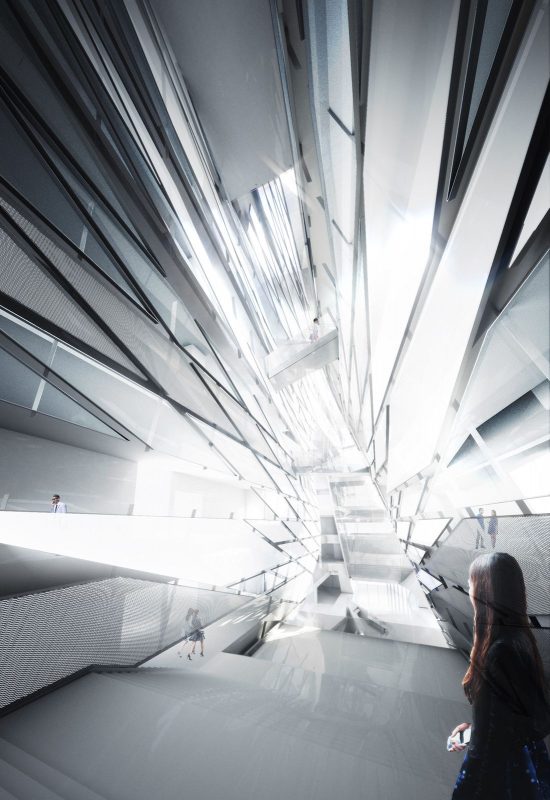 The designers aim for the LEED’s Gold certificate and South Korea’s top meticulous sustainability certification for the new building. They described their approach for the building’s performance as “a holistic concept encompassing energy efficiency, resource conservation, and environmental stewardship, working in concert with education and employee health and wellbeing.” They have also given proper attention to the quality of the work environment inside the building by including roof terraces, courtyards, as well as natural light and air portals in their design.