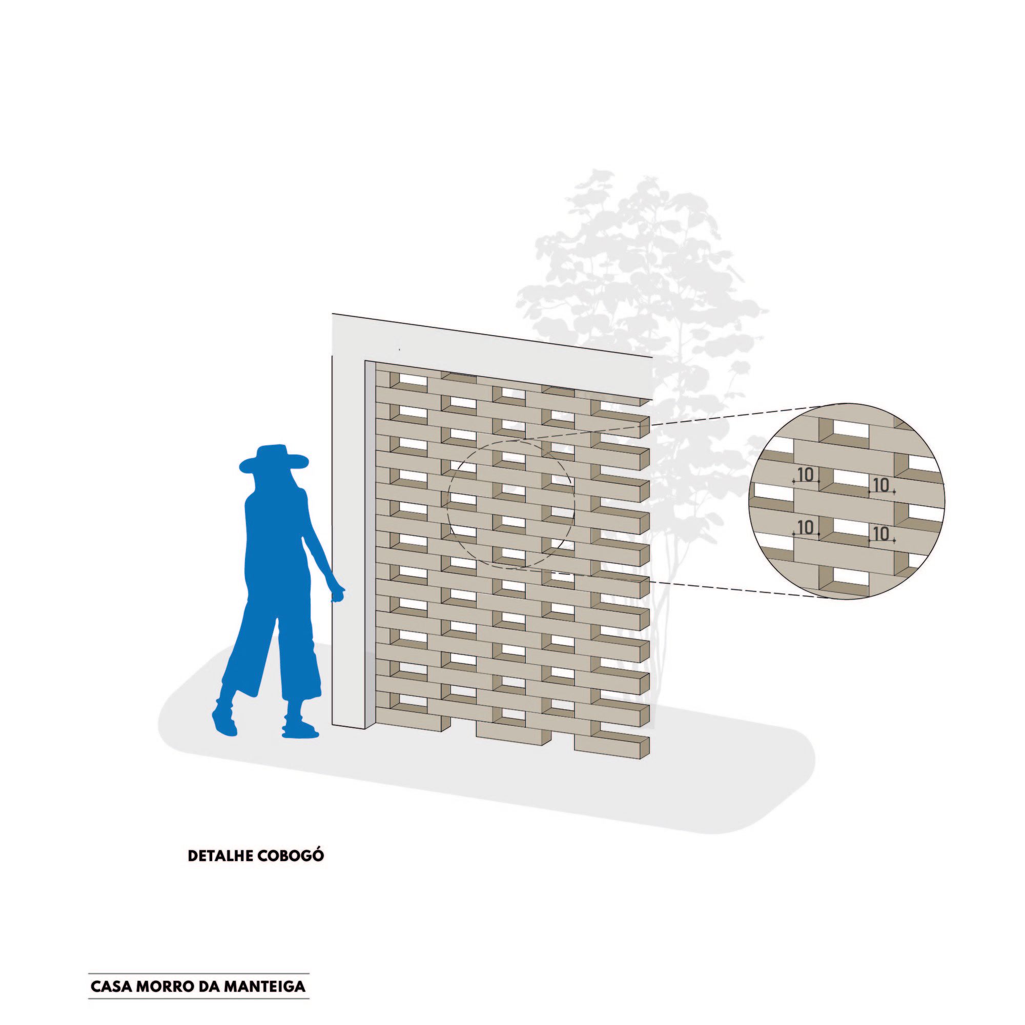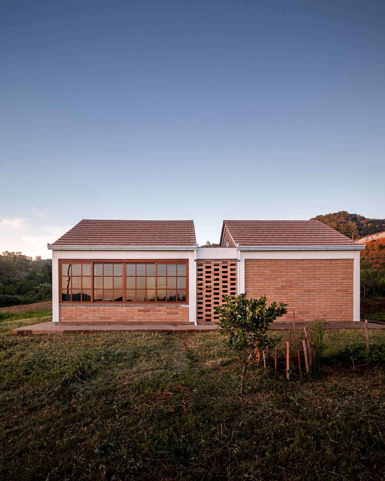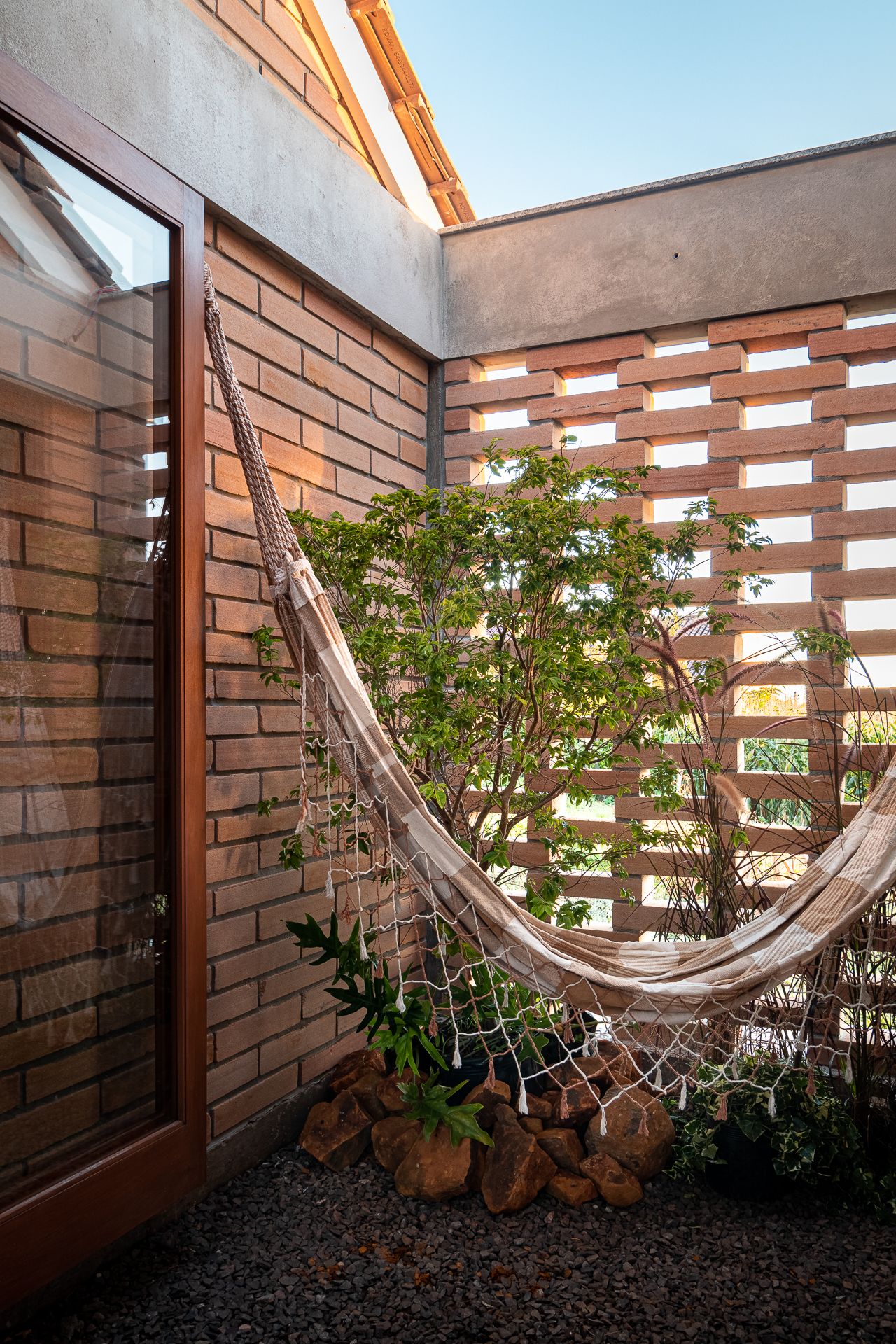 To close the patios, guaranteeing privacy, but also ventilation, we created a cobogó – traditional element of Brazilian architecture – with the gres brick itself, taking off the two volumes: social area and intimate area. The house will be expanded in the future and its extensions have already been designed, preventing what was built from being broken and ensuring the thermal comfort of the extensions.