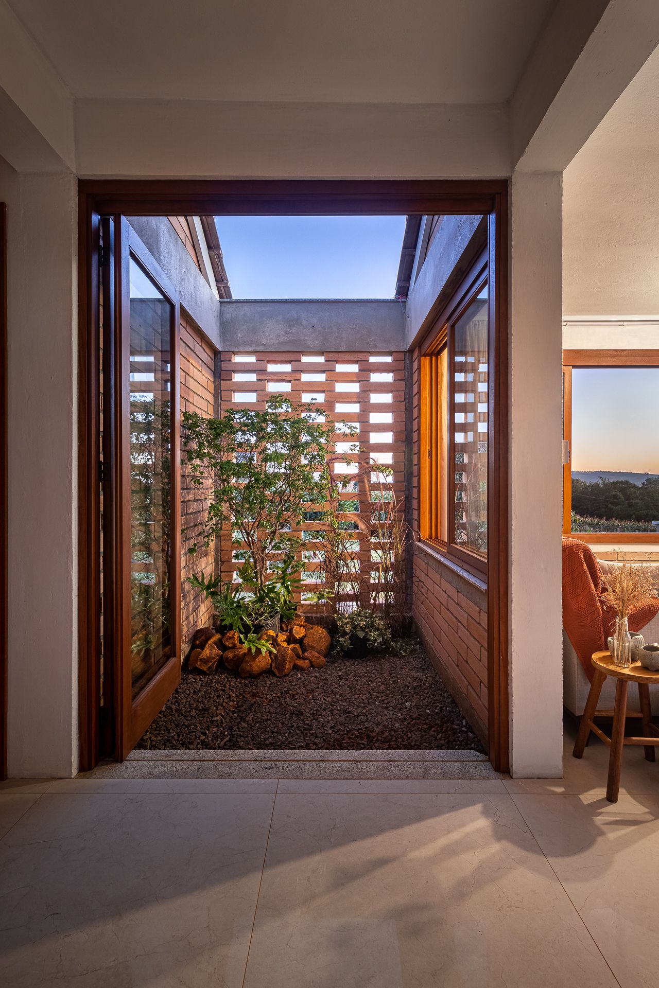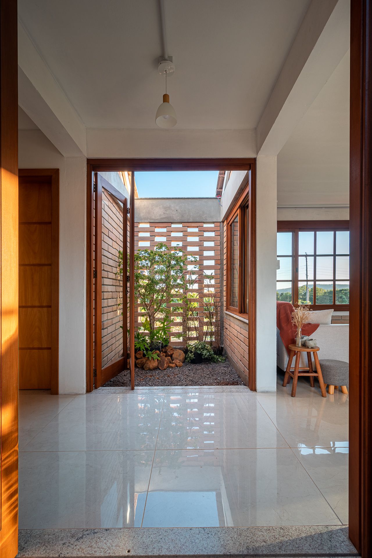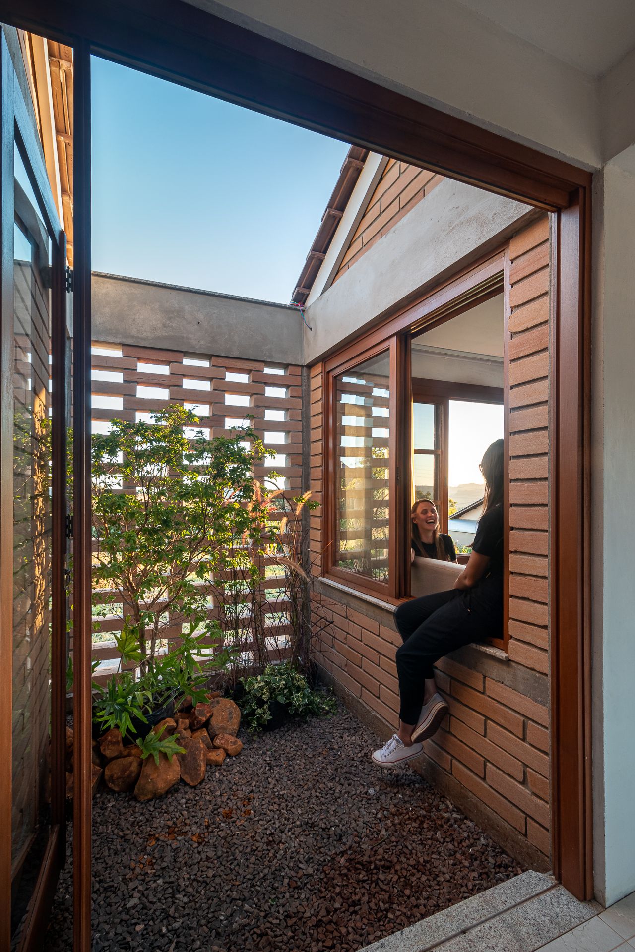 To close the patios, guaranteeing privacy, but also ventilation, we created a cobogó – traditional element of Brazilian architecture – with the gres brick itself, taking off the two volumes: social area and intimate area. The house will be expanded in the future and its extensions have already been designed, preventing what was built from being broken and ensuring the thermal comfort of the extensions.