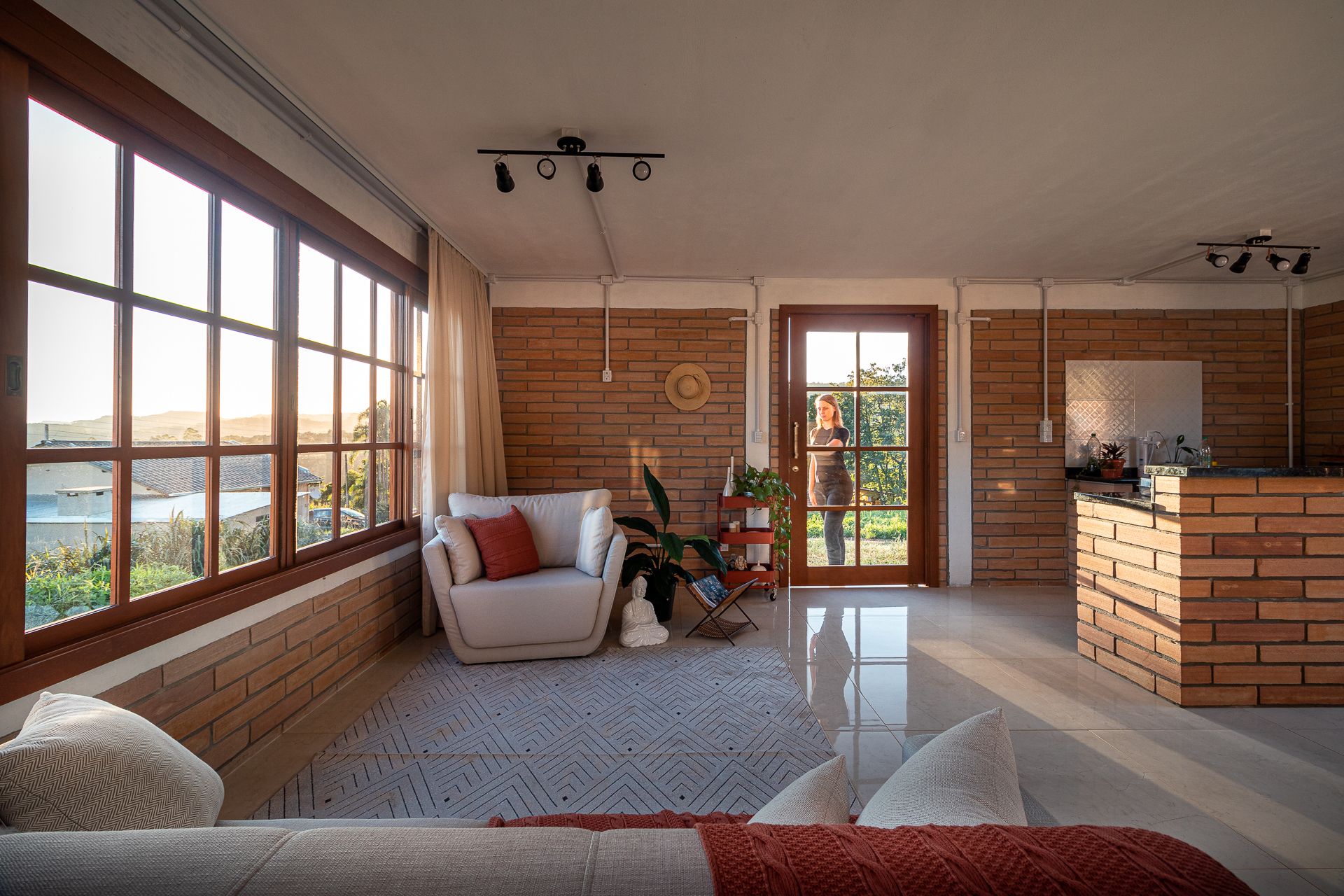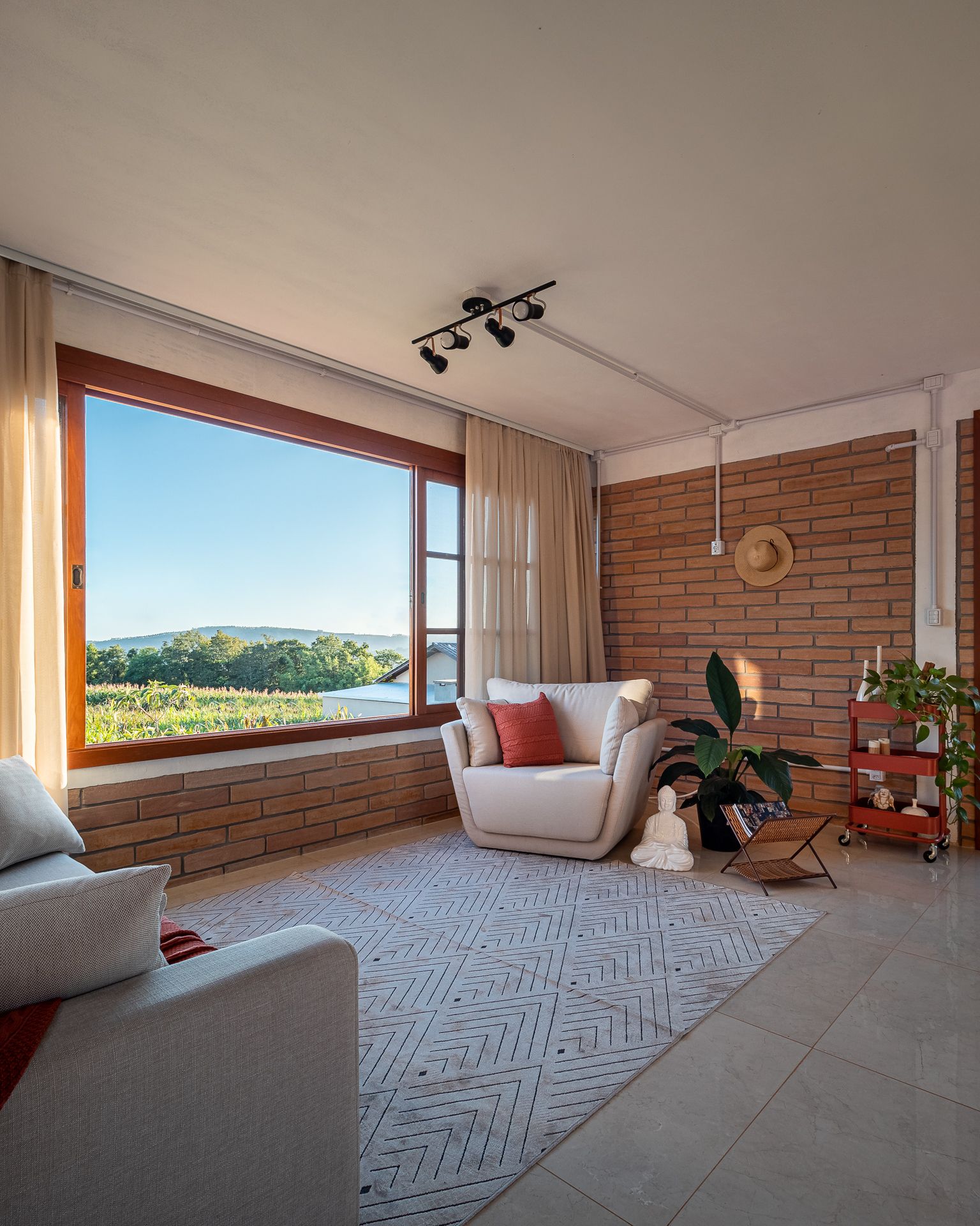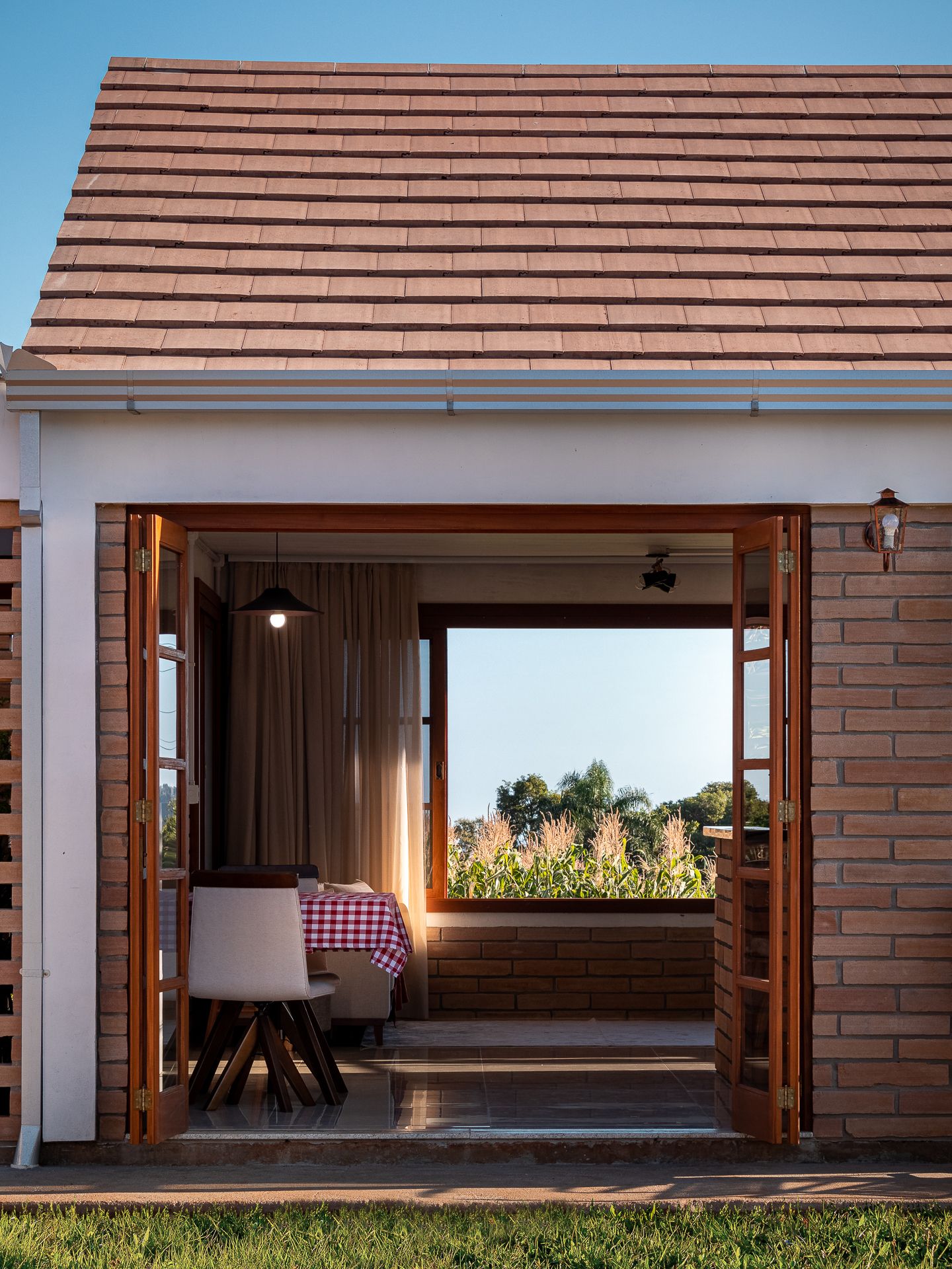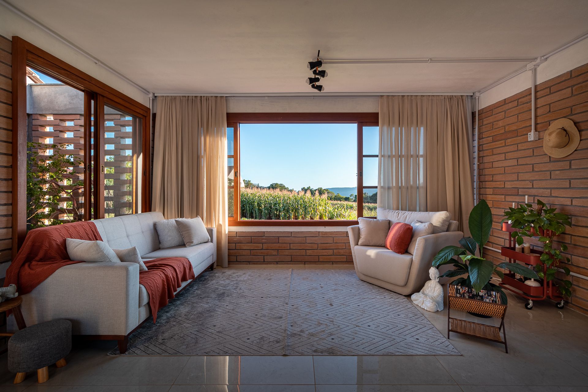Customers came to us to fulfill an old dream: to build their own house in the countryside and live in the tranquility of the rural area, after returning from the capital Porto Alegre to the countryside. The pace and quality of life are different: being able to sit on the balcony and listen to the birds singing, being able to breathe the fresh air and sitting in the sun at any time of the day, moving the earth and even picking your own food.