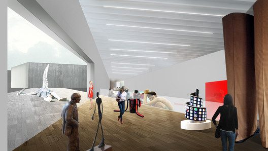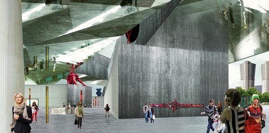 The proposal for Moscow’s New National Center for Contemporary Arts by WAI Architecture conceives the new exhibition space to be an extension of the existing city that will house all programs necessary for bringing a community together.