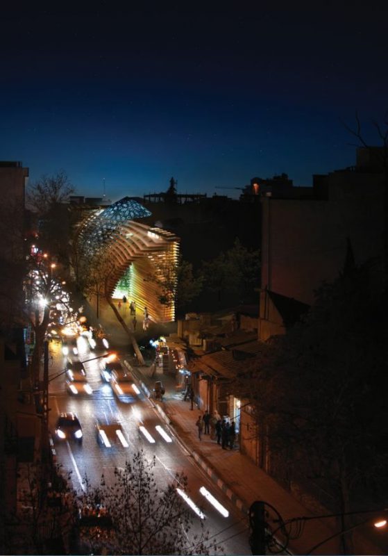 Inside, the limitation of site borders and neighbors, formation of the mosque in regard to the function requisites of this type of building, like praying hall and lateral activities, separated access and spaces for men and women etc. The local architectures of northern Tehran, led to the merging of elements of the mosque, such as minaret, porch, yard and dome in a way that recreated totally new spaces. The project related to the environment through the variety of climates in each season, and different view angels and transparency depending on environmental and interior light.