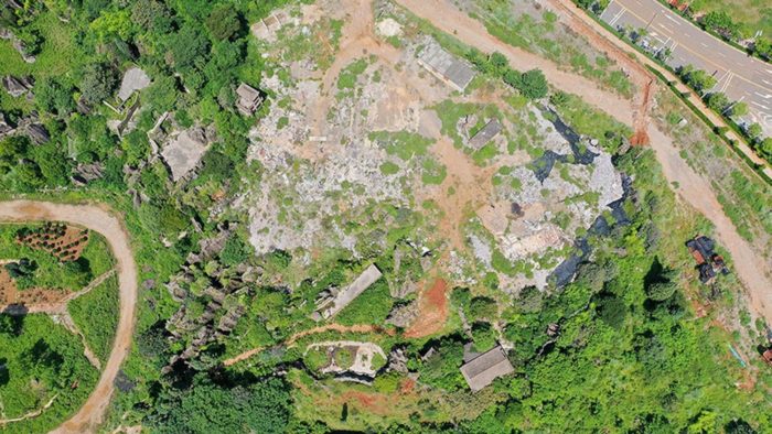 Harnessing the Landscape- The site is located roughly a 15-minute drive from the mountain’s base. As you ascend, you’ll encounter a meandering stone forest, and the mountain is divided into upper and lower plateaus, separated by a height difference of over ten meters, creating an appearance of steepness and poetic allure. While exploring this terrain, you may come across various structures, such as platforms, tea houses, viewing pavilions, verandas, and playing pools, thoughtfully erected by previous scholars and arranged from the base to the pinnacle of the stone forest.
