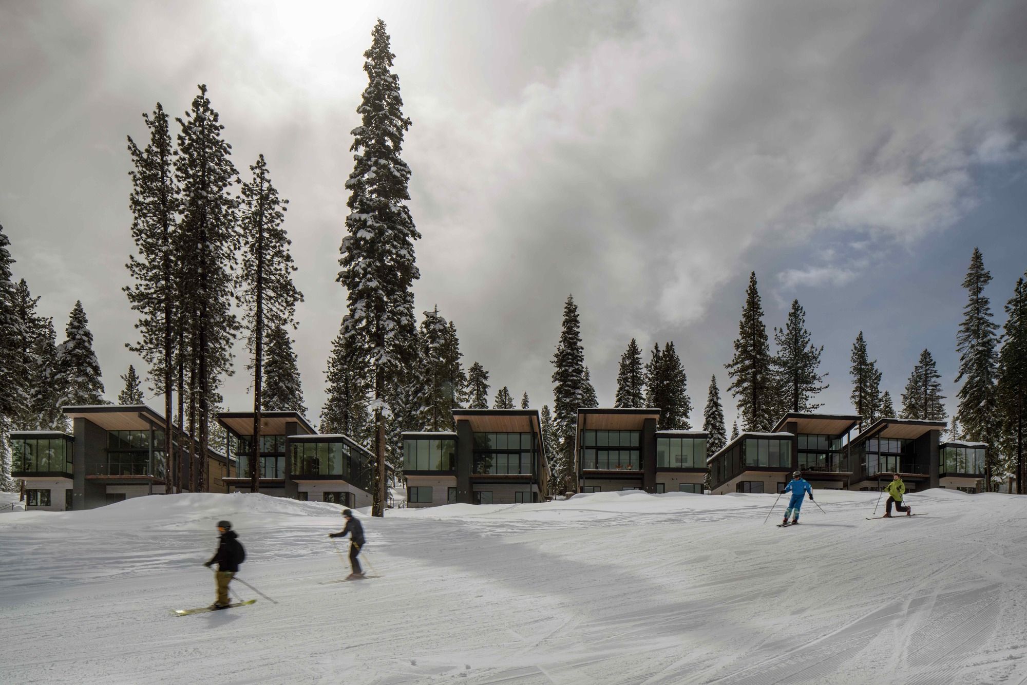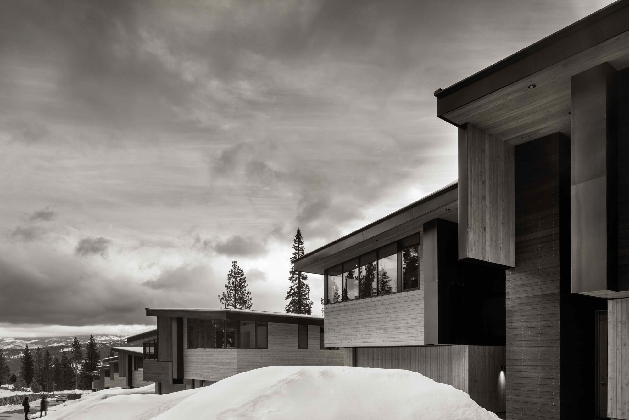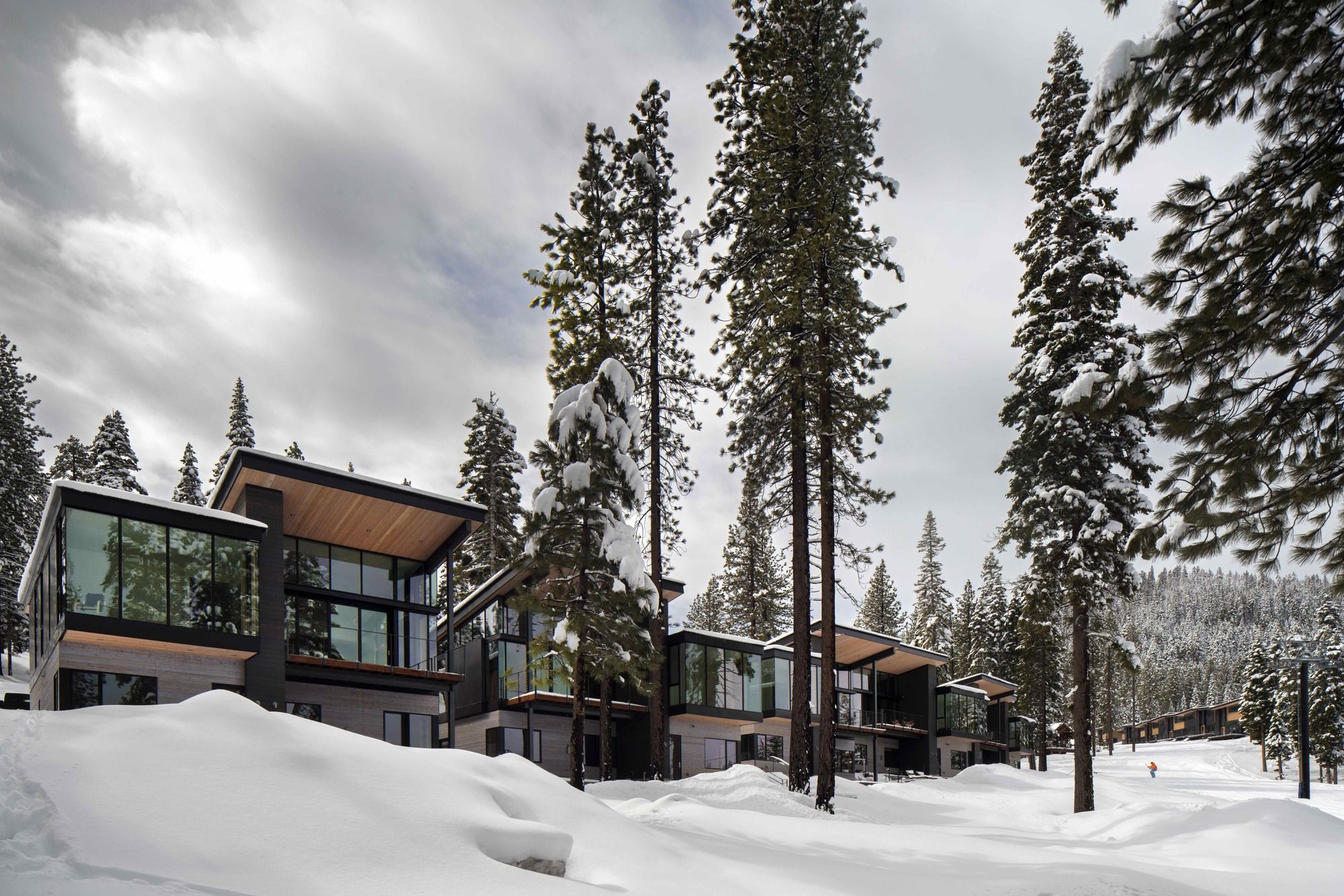 Located in a dense forest of Jeffery pine and Douglas fir, two distinct dwelling types—residences and townhouses—embrace the edge of a shared ski slope. Celebrating outdoor-living with direct access to skiing, hiking, and biking, the six single-family units and 11 townhouses visually and materially engage their surroundings, emphasizing healthy living and environmental stewardship, as demonstrated in the project’s LEED for Homes certification design standards.
