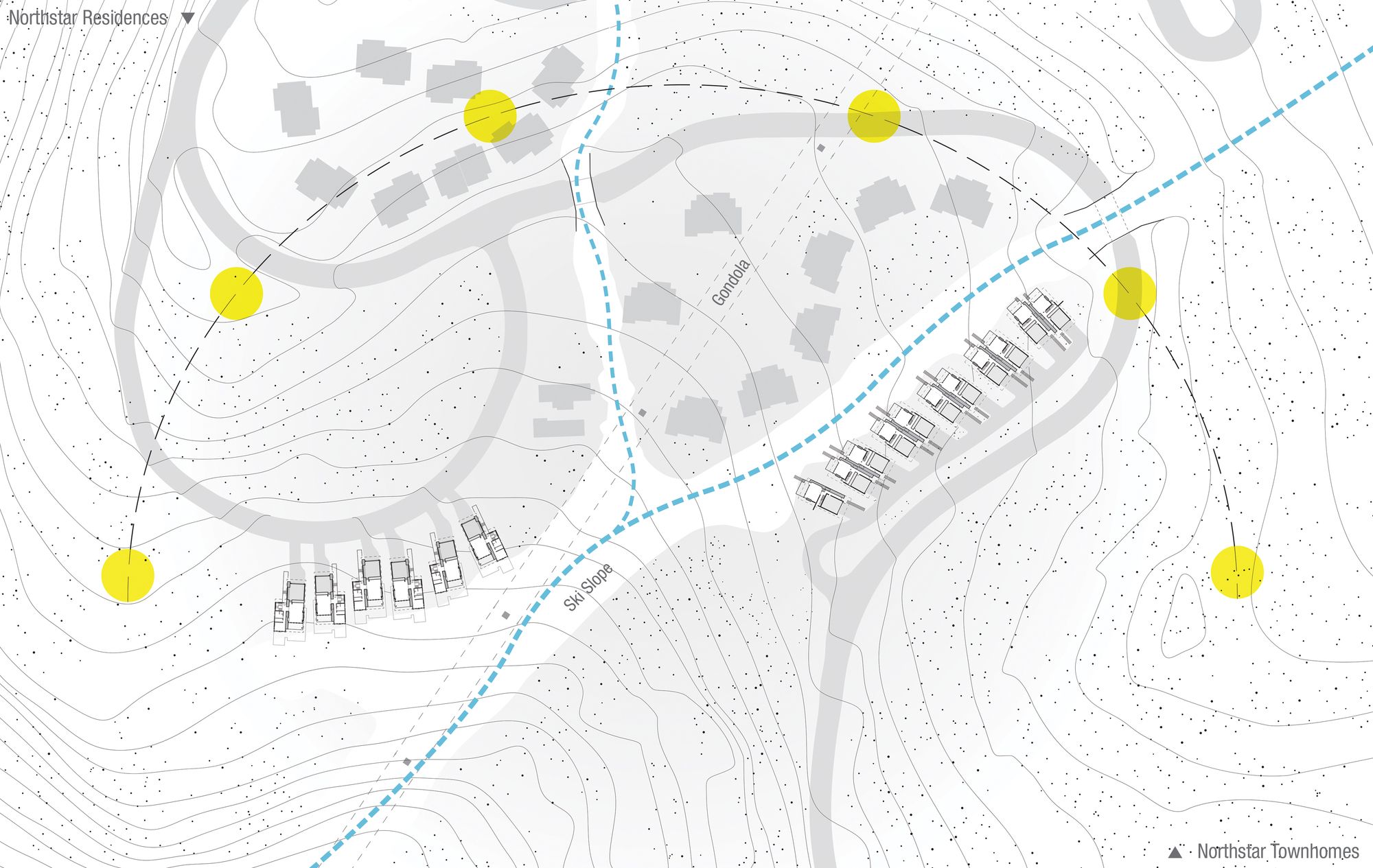 Working with a progressive developer in the Lake Tahoe area, this collection of townhouses and single-family residences is a modern reinterpretation of the ski chalet. Conceived to be smartly efficient and compact in plan, these ski-in/ski-out homes are designed around social spaces that take advantage of breathtaking views to the ski slopes and Carson Range beyond.