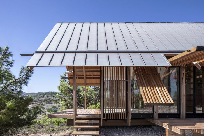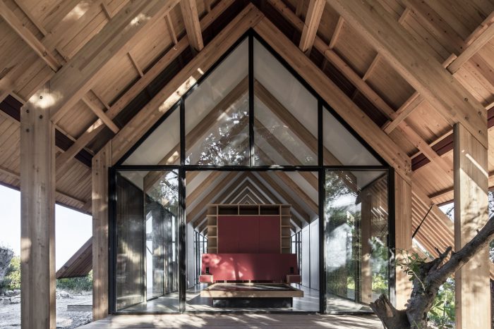A simple, open plan allows natural lighting and facilitates cross ventilation. The transparent surfaces designed to receive maximum daylight into the interior spaces minimize the necessity for artificial lighting. The high-pitched gable roof houses the photovoltaic panels to produce electricity and solar panels to heat water.