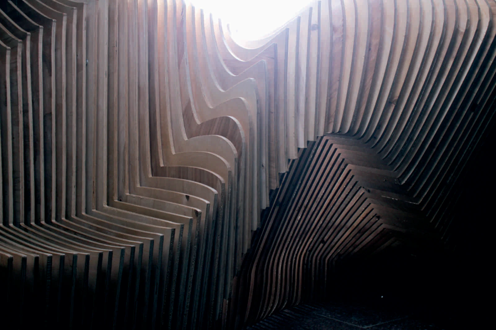 The project of public space was designed by Anastasia Fedan, Anastasia Tkachenko, and Liubov Titarenko. In this project were used the method of minimal surfaces. Starting with simple form was created the element that determined the shape of the final structure. Physical simulations by using rest length scale allowed to choose the best option of the geometry. Through the popularization of the resulting element was created the general structure of the object. Due to the geometry final structure received a variety of leisure activities in a public space. The project was realized by using of 3d printing technology in 1 50 scale.