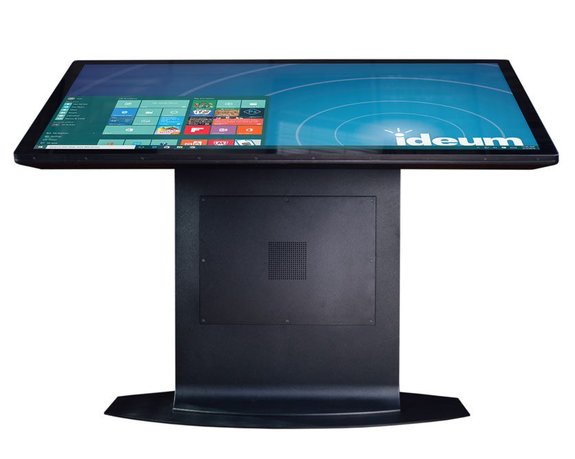 ideum drafting table has a fixed display at a 30 degree angle for comfortable interaction. The Ideum signature Platform pedestal can be paired with a 46″, 55″, or 65″ multitouch display. The 46″ models comes with a 3M Display that allows for 60 simultaneous touch points. The table is integrated with a high performance Intel Quad-Core i7 with 8GB RAM and can be upgraded to include a powerful, discrete graphics card and other options.