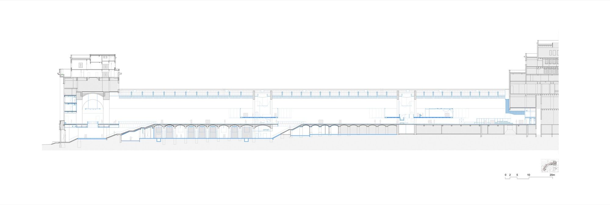 We have created a more straightforward route for visitors by reopening a historic staircase that dates back to the 1878 project. We have seamlessly incorporated it into both the temporary and permanent exhibit routes. These spaces are strategically opened to the external world, aligning with restoring the volumes of the 1937 design and firmly connecting the museum with its surrounding environment.