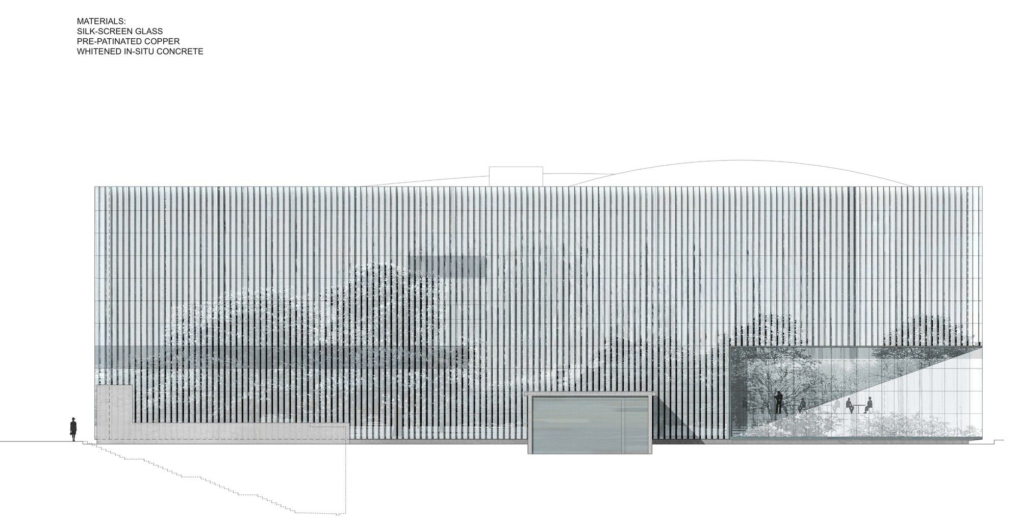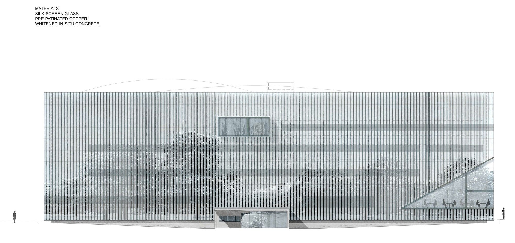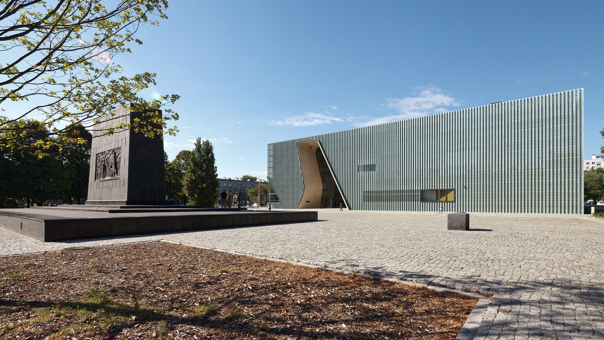 Adjacent to the new museum is the memorial of the uprising in the Jewish ghetto. The memorial has been an important element in the architecture of the museum. The proportions of the plaza in front of the memorial and the museum have been carefully considered. The shape of the museum building is rectangular. The facades will be covered with glass and copper panels.