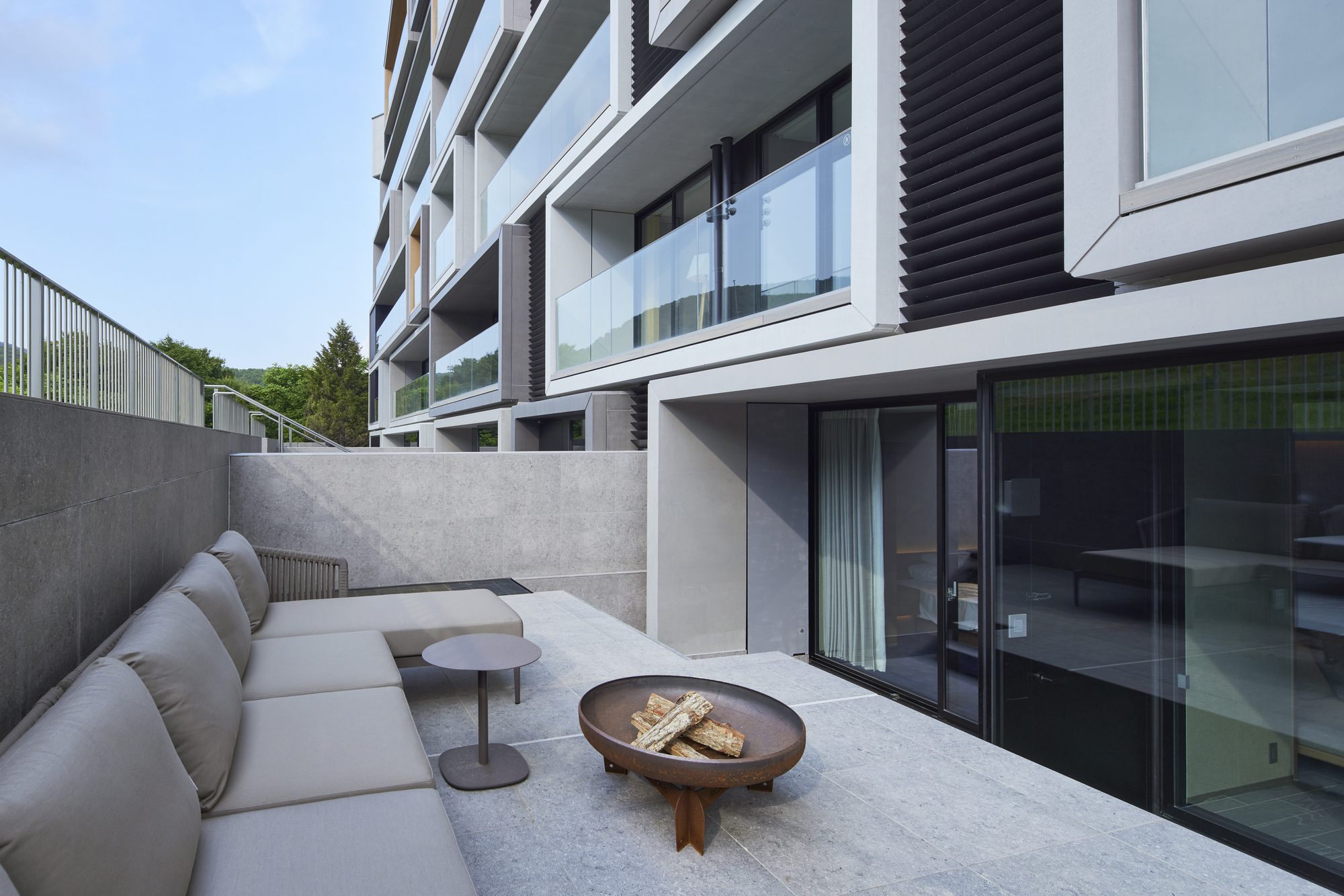The “condominium-style” exterior design creates a new Niseko landmark – This condominium hotel is located in the Niseko area of Hokkaido, a world-renowned ski resort that attracts overseas skiers and investors. It is connected directly to the ski slopes and offers prime views of Mt. Yotei and the birch forest, which are symbolic of the region. The site is located within a national park area, subject to various regulations under the Natural Parks Law, including building height, setback distances from property boundaries, floor area ratio, roof shapes, exterior materials, and color scheme. In response, this project incorporates the context of the Niseko area’s landscape characterized by scattered, small-scale buildings, gabled roofs reminiscent of Hokkaido’s traditional landscape, and the region’s history and culture. By balancing economic principles and rationality, the design achieves an architecture that preserves the scenery of Hokkaido and Niseko.