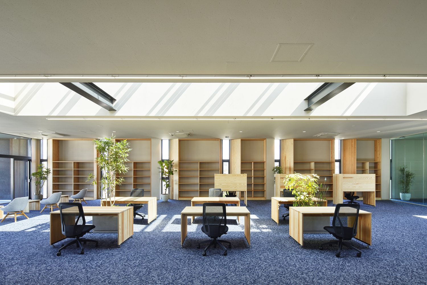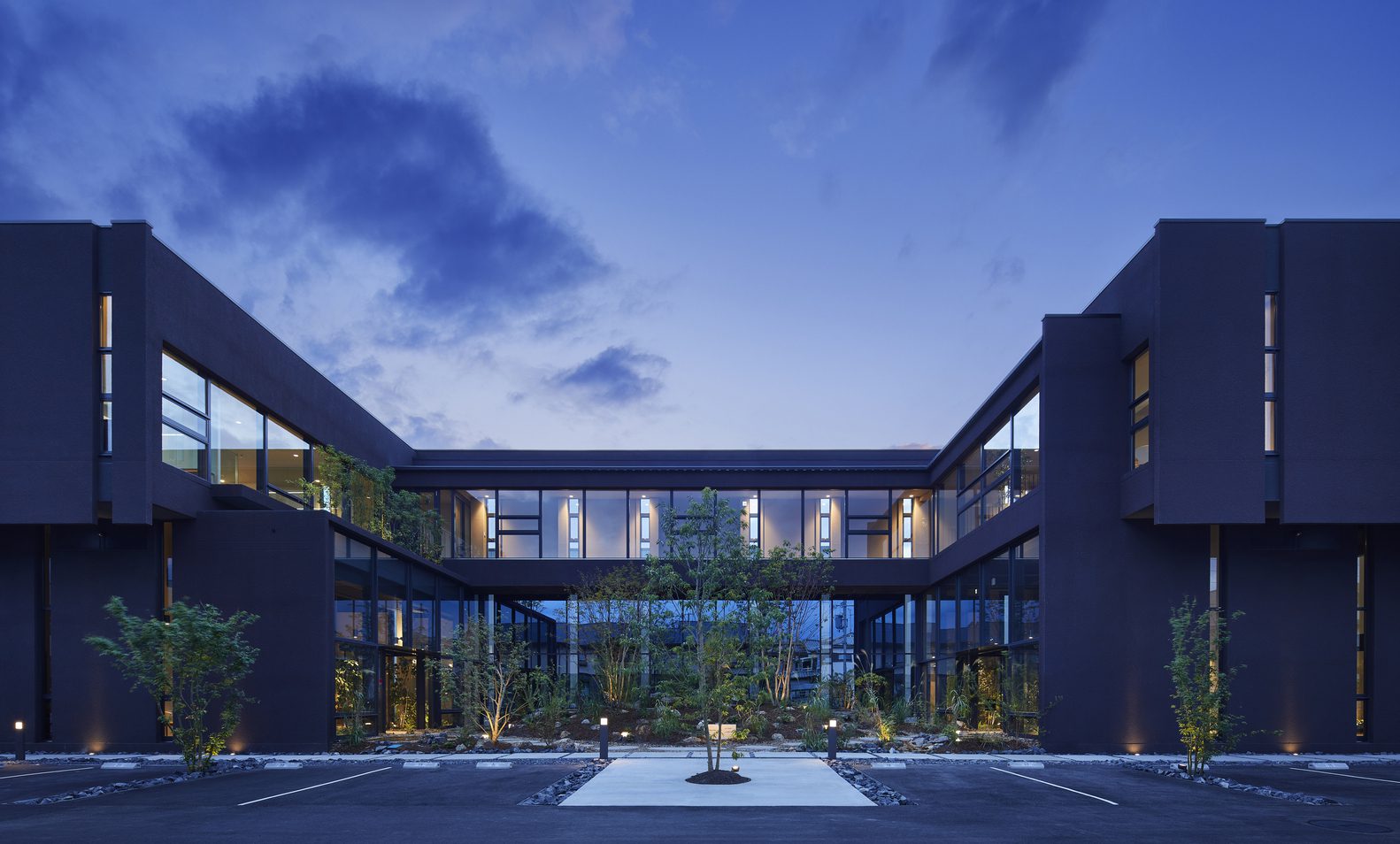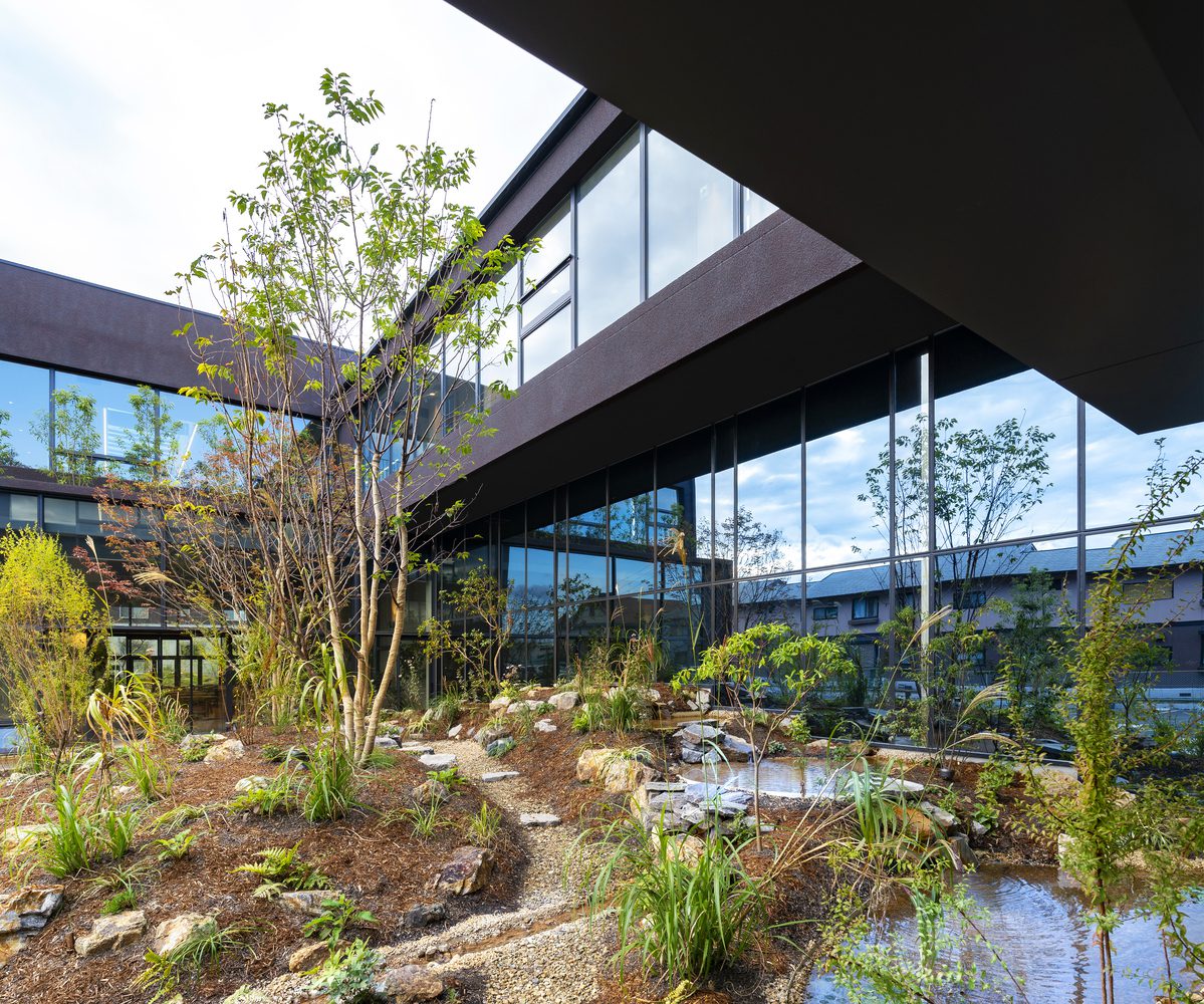 Nakagawa Century Memorial Hall provides a space where workers can enjoy a soothing environment that engages all five senses. Fresh breezes flow through the building, natural light streams in through skylights, and greenery and water features, including a central courtyard, are strategically placed throughout. It’s a smart office equipped with IoT and AI, allowing users to navigate their day without physical contact, making it well-suited for the post-pandemic era.