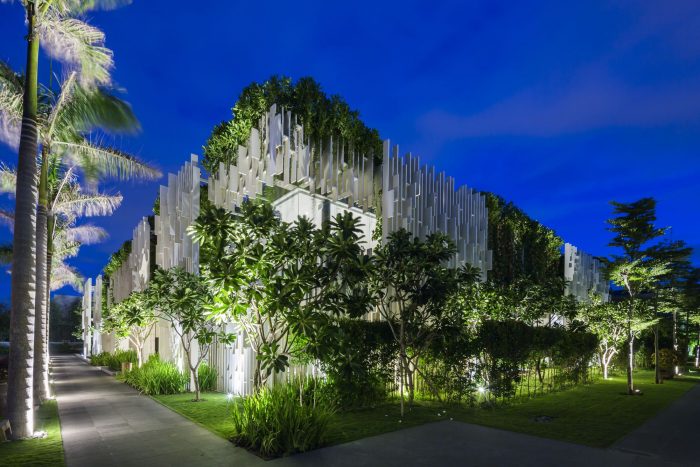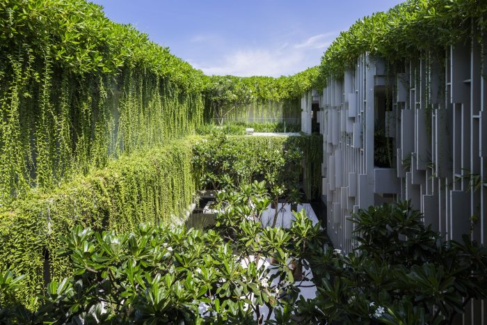 Different area’s flow smoothly into each other and the beautiful landscape creates an amazing journey into a dream like experience. The facade is composed by lattice patterns alternated with vertical landscapes that filter the strong tropical sunlight into a pleasant play of light and shadow on the textured walls. Various plants are carefully allocated and become a part of the architectural screens.
