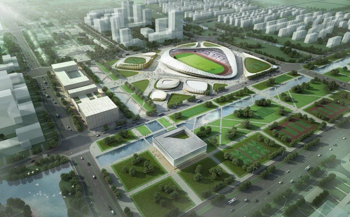The Architect HENN Description: The Sports Centre is located in the center of Nantong, a major metropolis north of Shanghai. Within the immediate vicinity of the new Urban Planning Museum, that together, with the green belt along the river, describes the east-west axis of the city, the Sports Center not only provides a diverse range of leisure facilities, but also a new public meeting place.