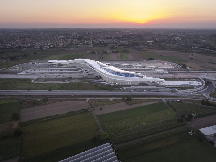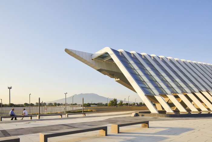 It is the bridge above the tracks, where as the key challenge of the architectural scheme is to create a well organized transport interchange that can simultaneously serve as a new landmark to announce the approach to Naples – thus a new gateway to the city.
