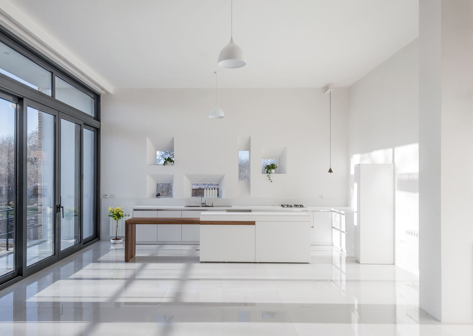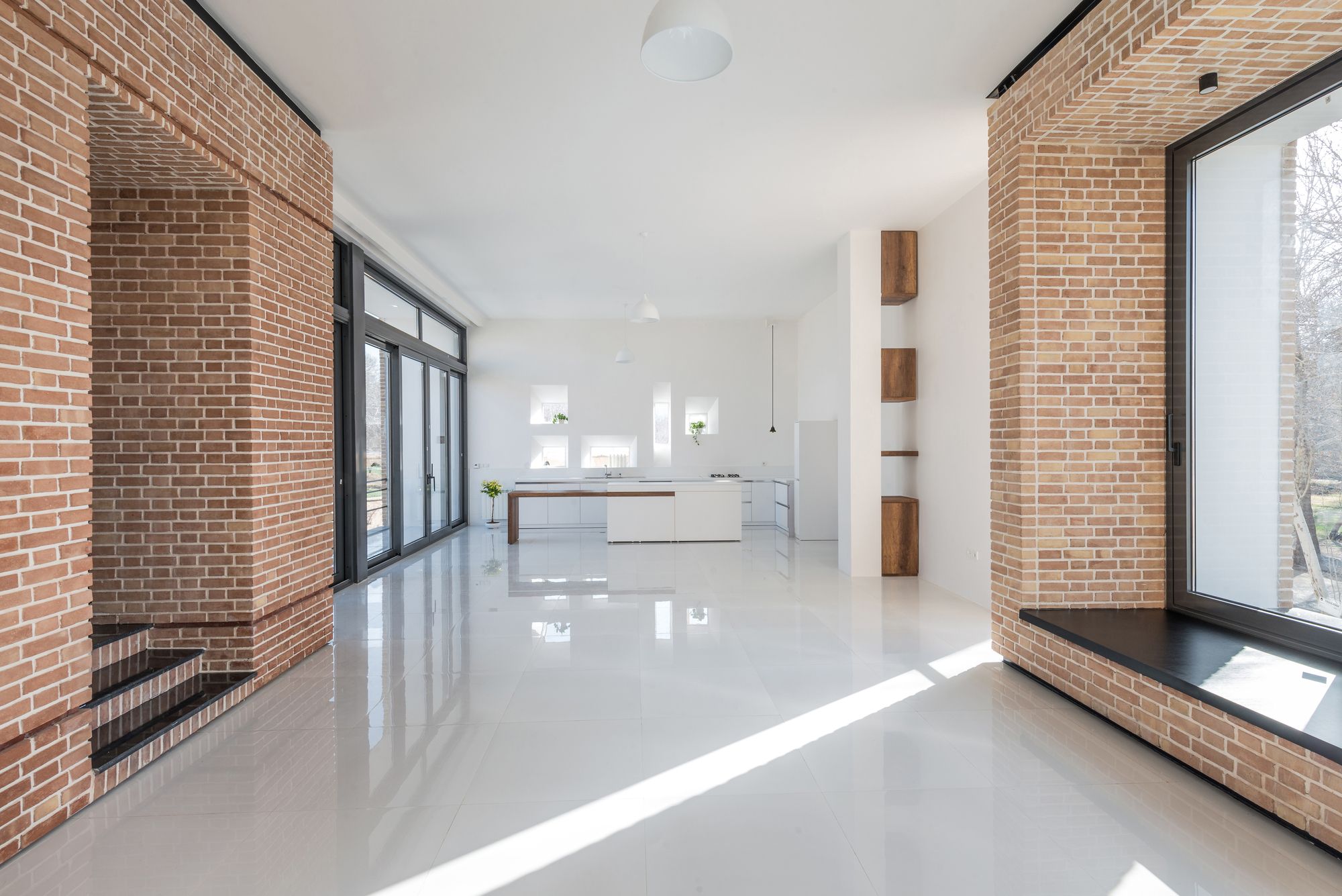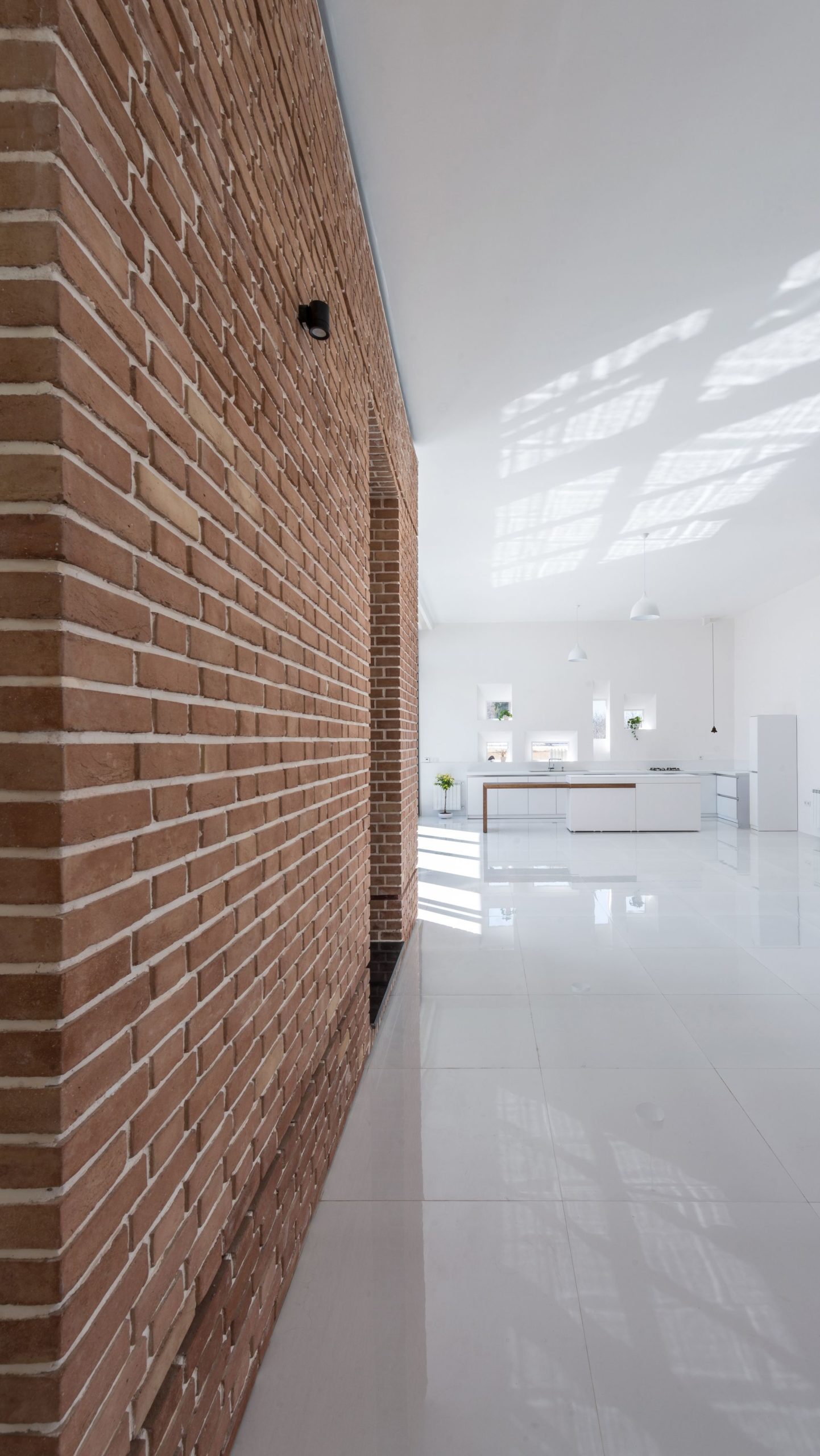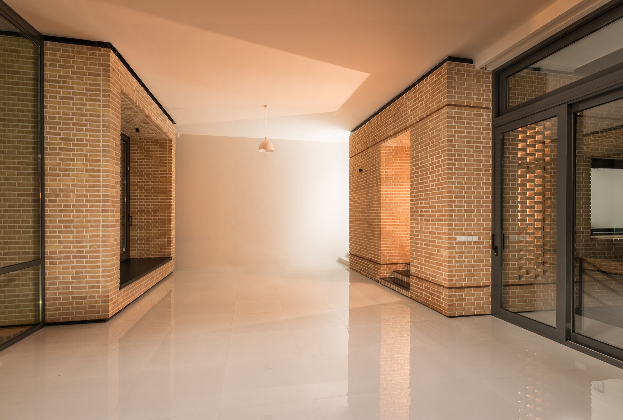 The westward wall that was the only one shared with Public Street was covered with brick texture to both guards the unpleasant western light and maintain the privacy of the property. Large windows from floor to ceiling were placed for the walls which overlooked the gardens including kitchen and living room, the size of these windows were smaller in the bedrooms.