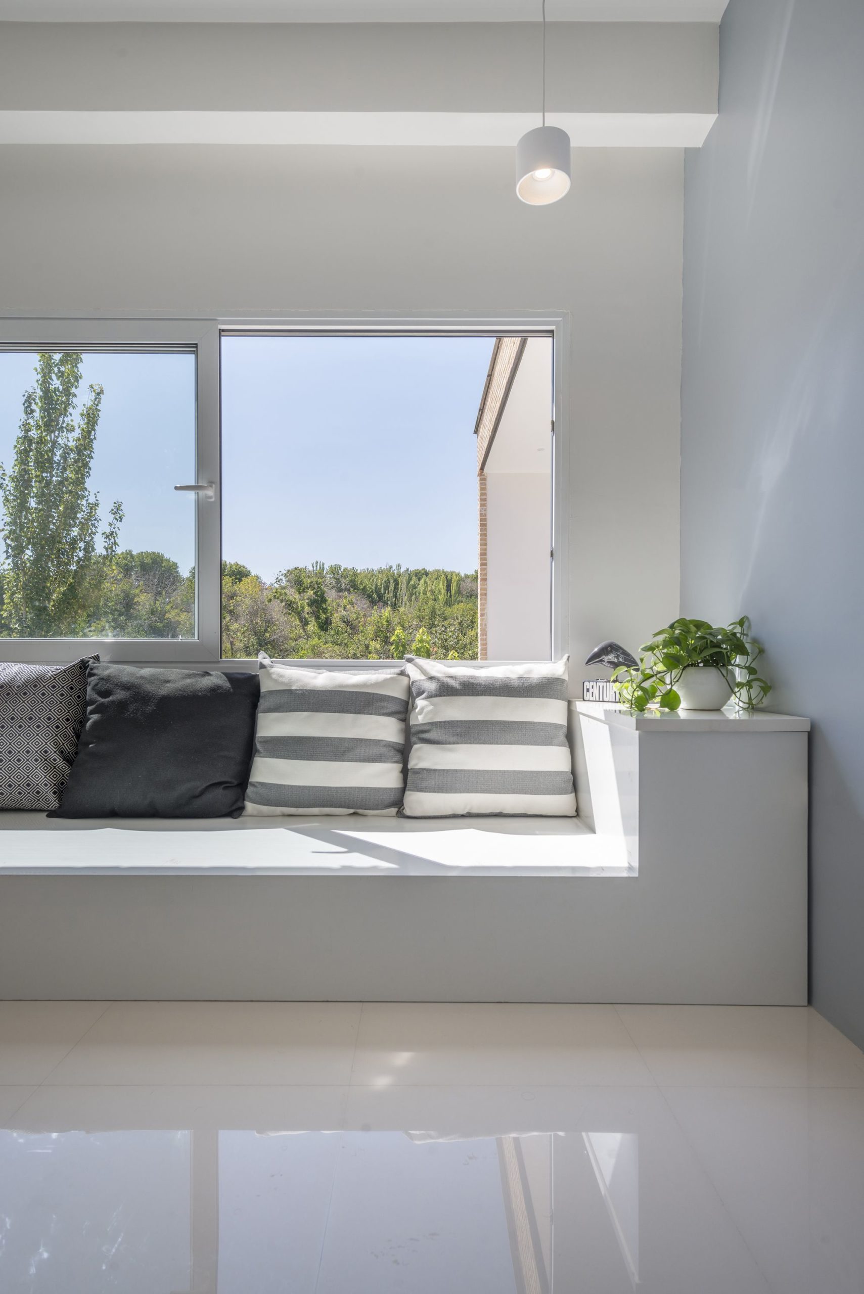 Since according to Nataz city code, just one floor on the top of the pilot level was allowed to build, and pilot level did not have any views over the flat gardens in the southeast, it was decided to leave the pilot level open as much as possible and transfer all functional needs to the first floor. After placing all spaces on one floor, the main challenge was to preserve the view of all spaces.