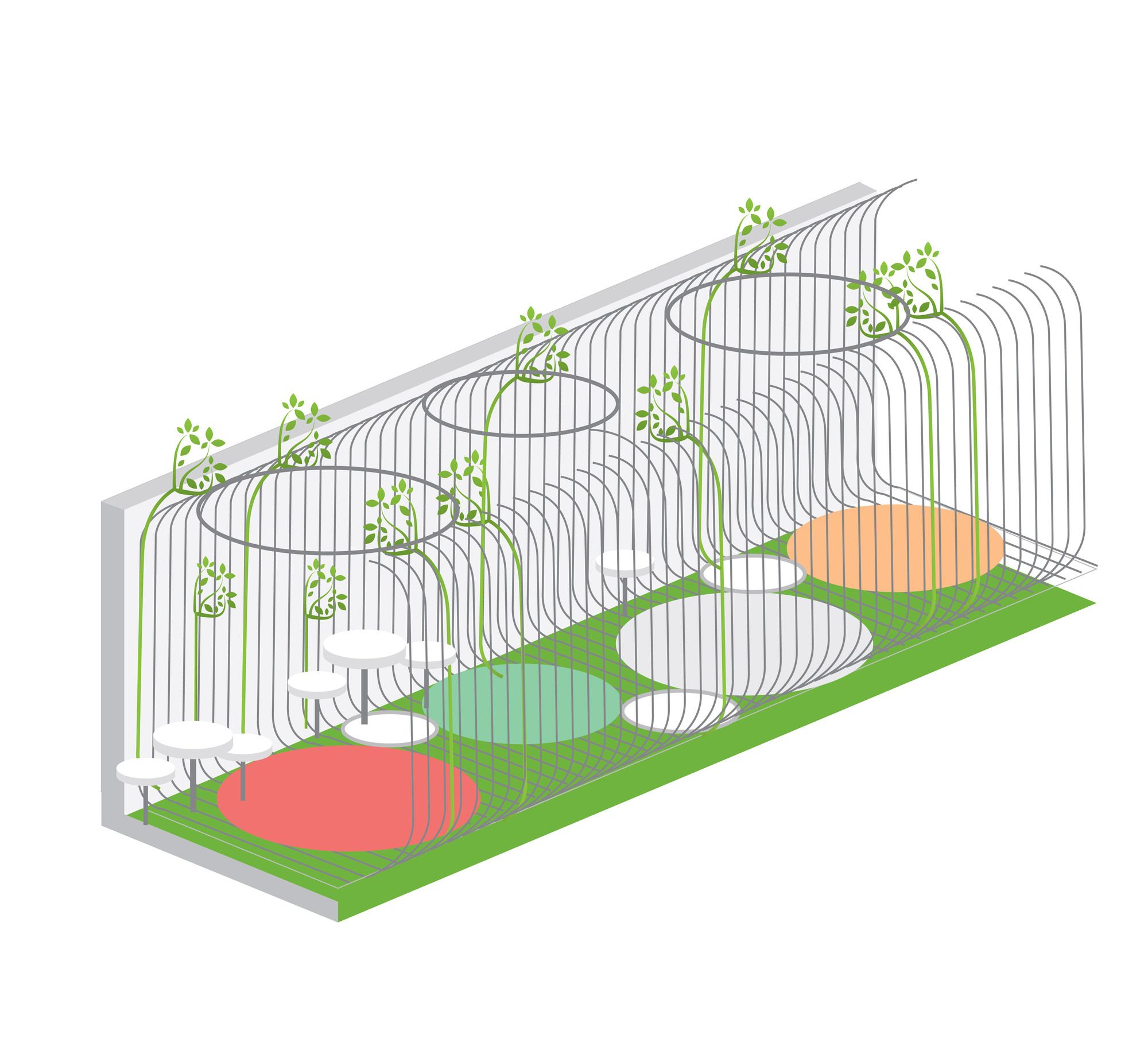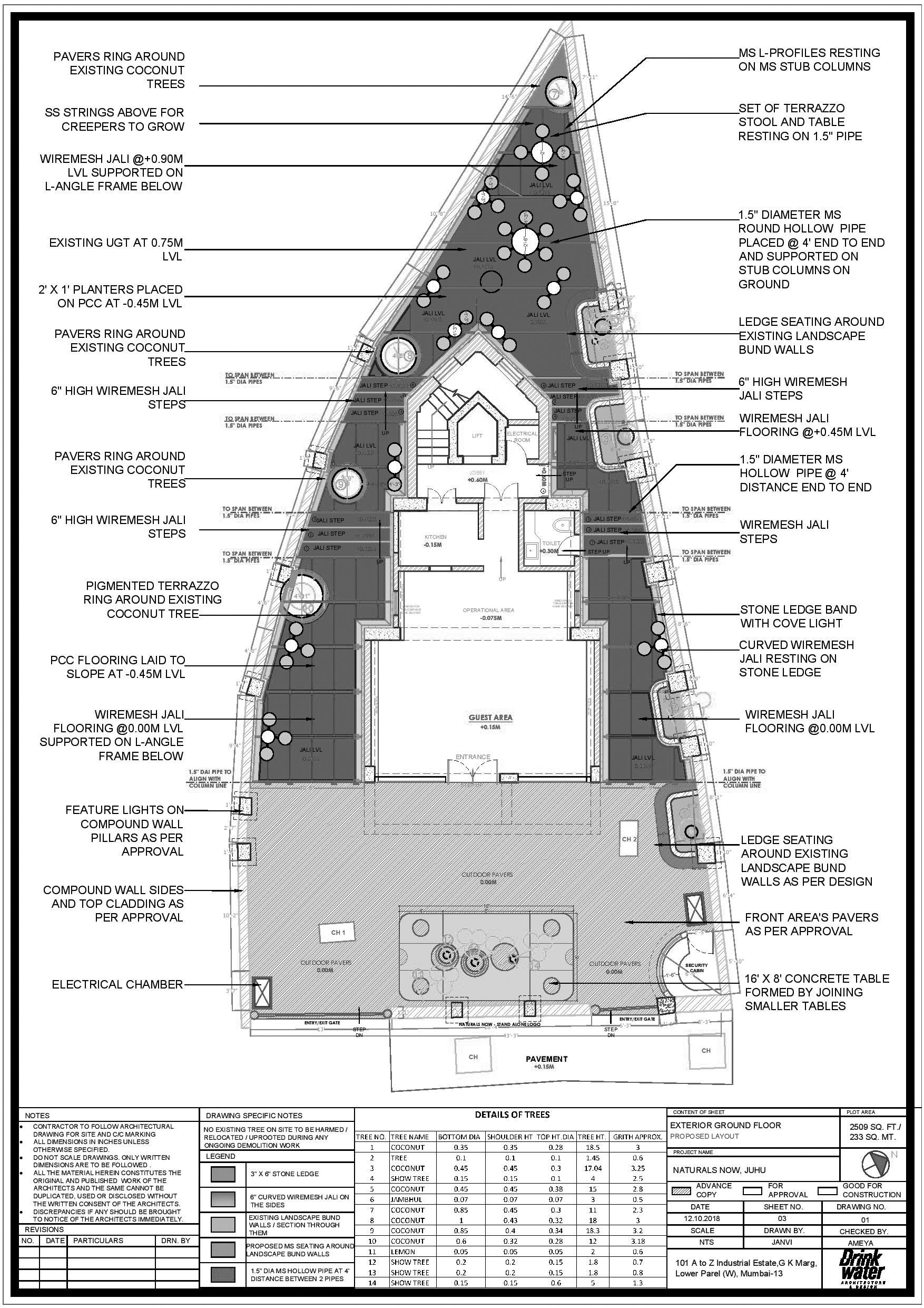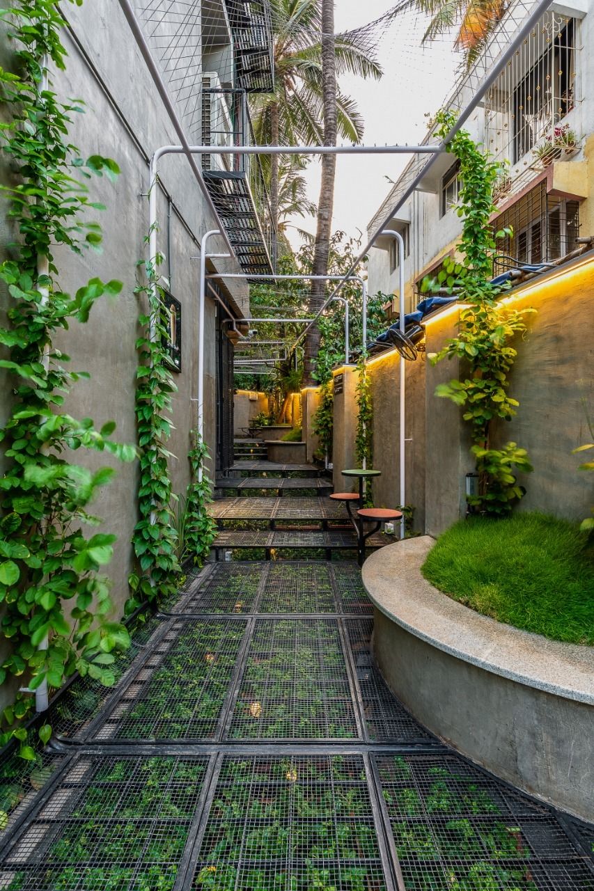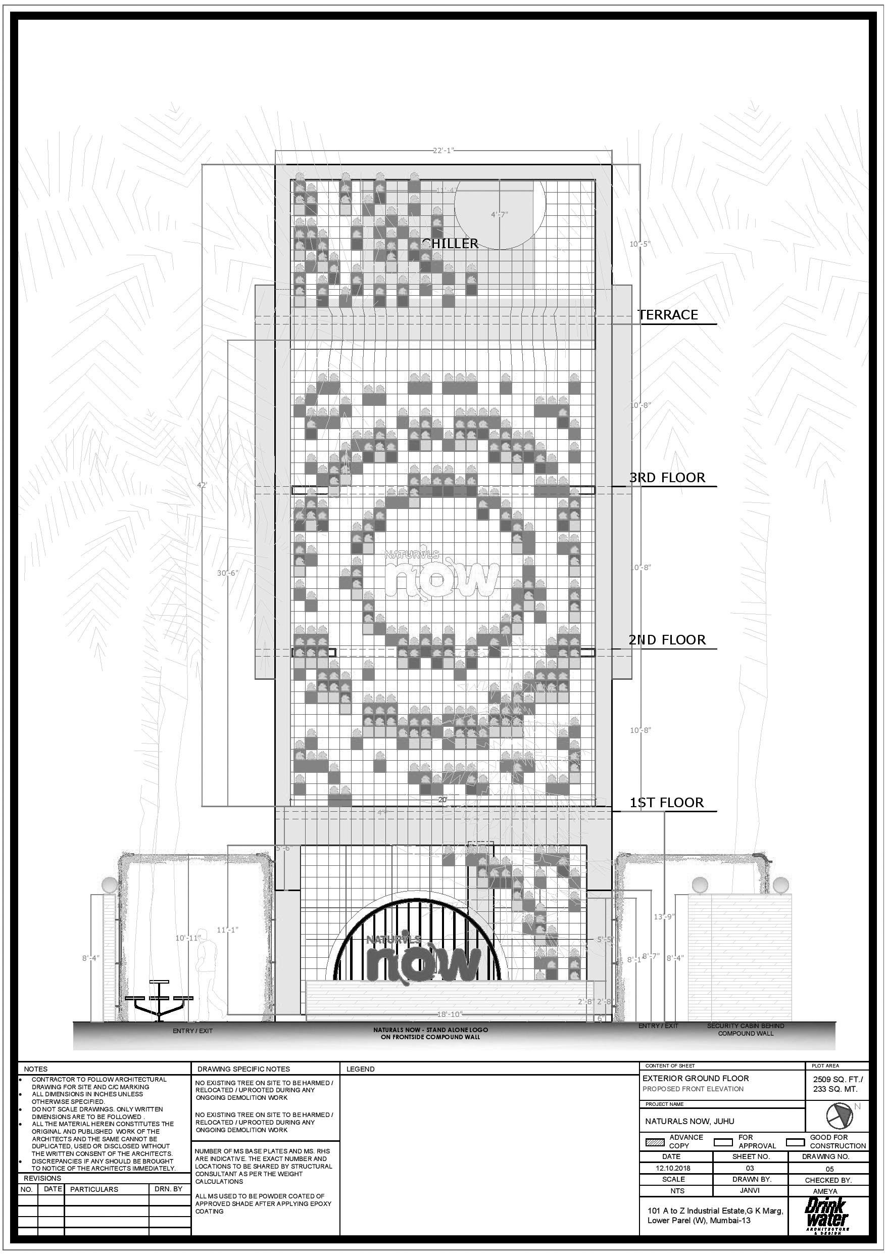 Surrounded by trees and with potted plants literally at your feet, the Juhu outlet of the iconic ice-cream brand Natural’s extension – Naturals Now – is designed to offer an experience that simulates a walk in the park. A green oasis in the midst of the bustling Mumbai suburb of Juhu, Naturals Now stands out because of a unique façade that stands tall like a statement. Made from mesh that creates a creamy swirl, the façade boasts of 350 pots, making Naturals Now a place that just cannot be missed