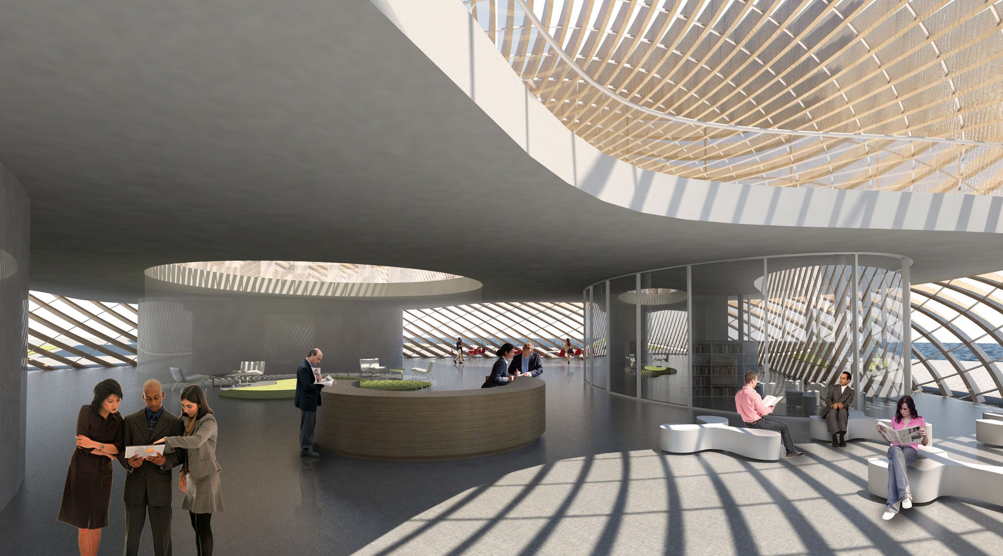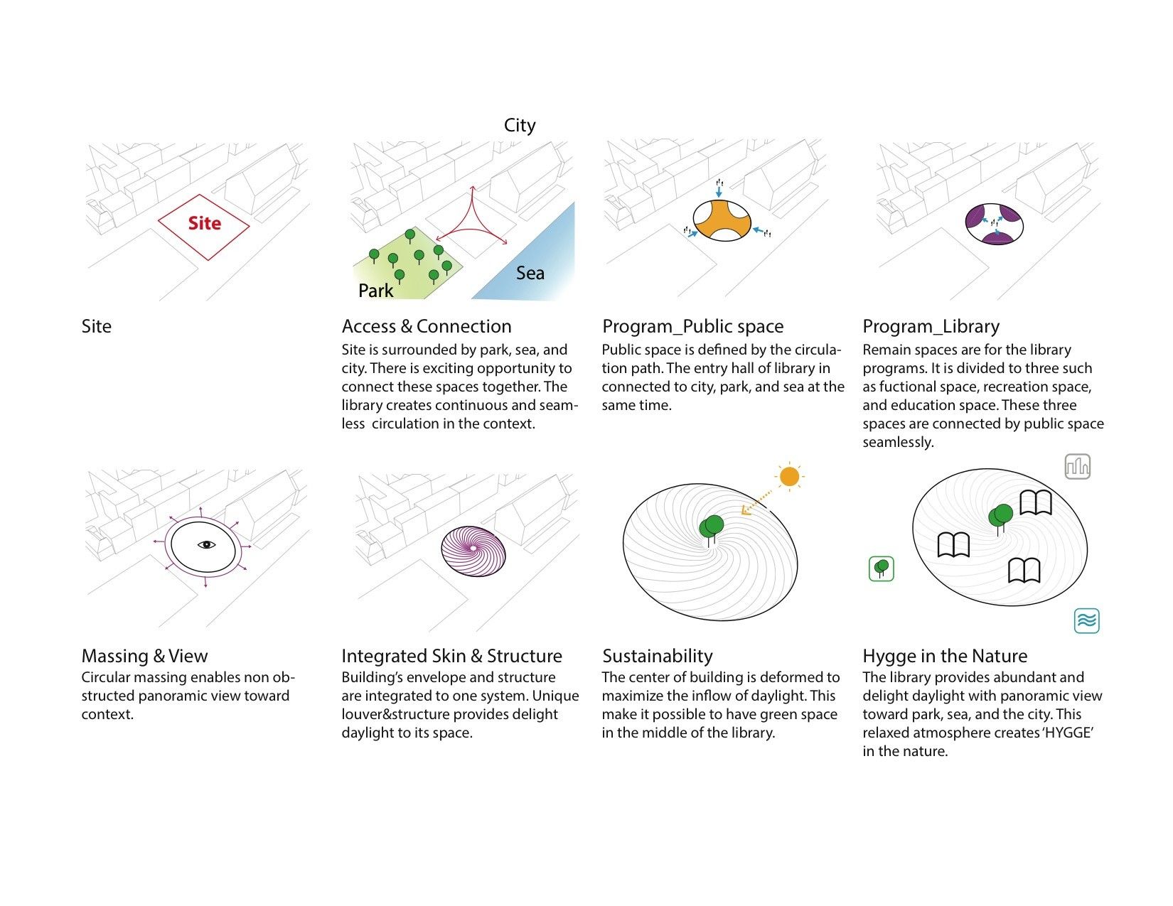 This is an entry for the AWR Copenhagen New Modern Library Competition by Sang-Uk & Heeyun. The project is centered around the park, sea, and the city, the undulating ribbed library aims to connect to its surroundings seamlessly.