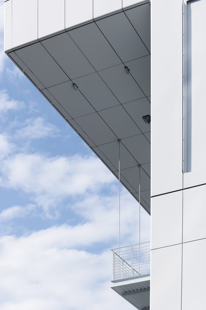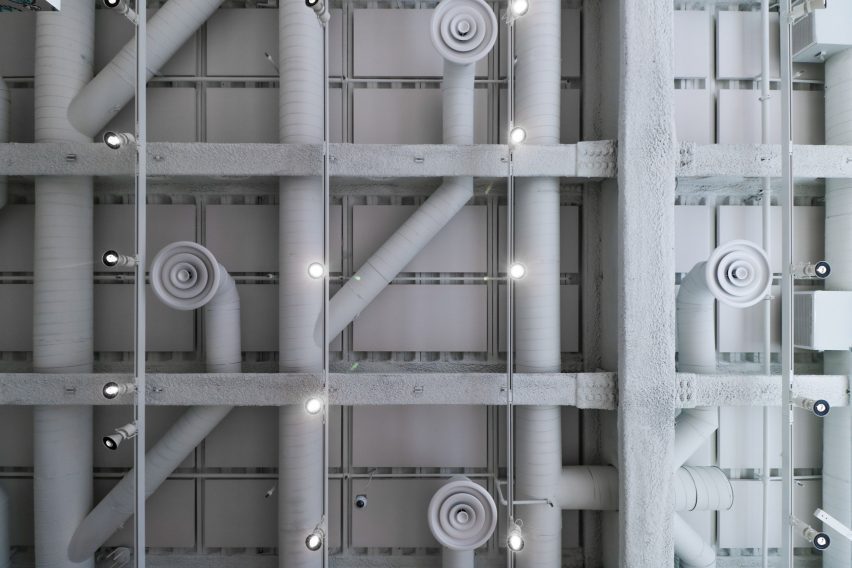 “In contrast with the off-white color of the cladding panels, certain components visible from outside hold joyful colors, such as the elevator cabs, the stair walls, the exterior side of the theater’s blackout shade, and some millwork components,” said RPBW.