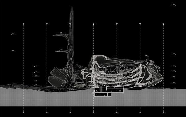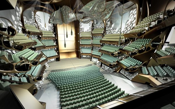 The elaborately creative structure conducts the feeling of awe and amazement with its unique gestures and fluid movements. The bizarre and captivating concert hall echoes the architects’ ideas for a multilayered and complex music experience. Outside of the sensual qualities of the space a system of centrally positioned classical symmetric concert hall geometry and specifications were put in place. Some of the elements of the building include two areas created as sound shells inspired by biological shell geometries (biomimicry) and spaces for an energy self-sufficient structure utilizing host interaction and active materials. Even though the key elements associated with Romanticism are contradictory to the absolutistic building systems and configurations the architect introduces into his design, the combination provides a new outlook on creative expression that embarks on rethinking traditional architectural concepts.