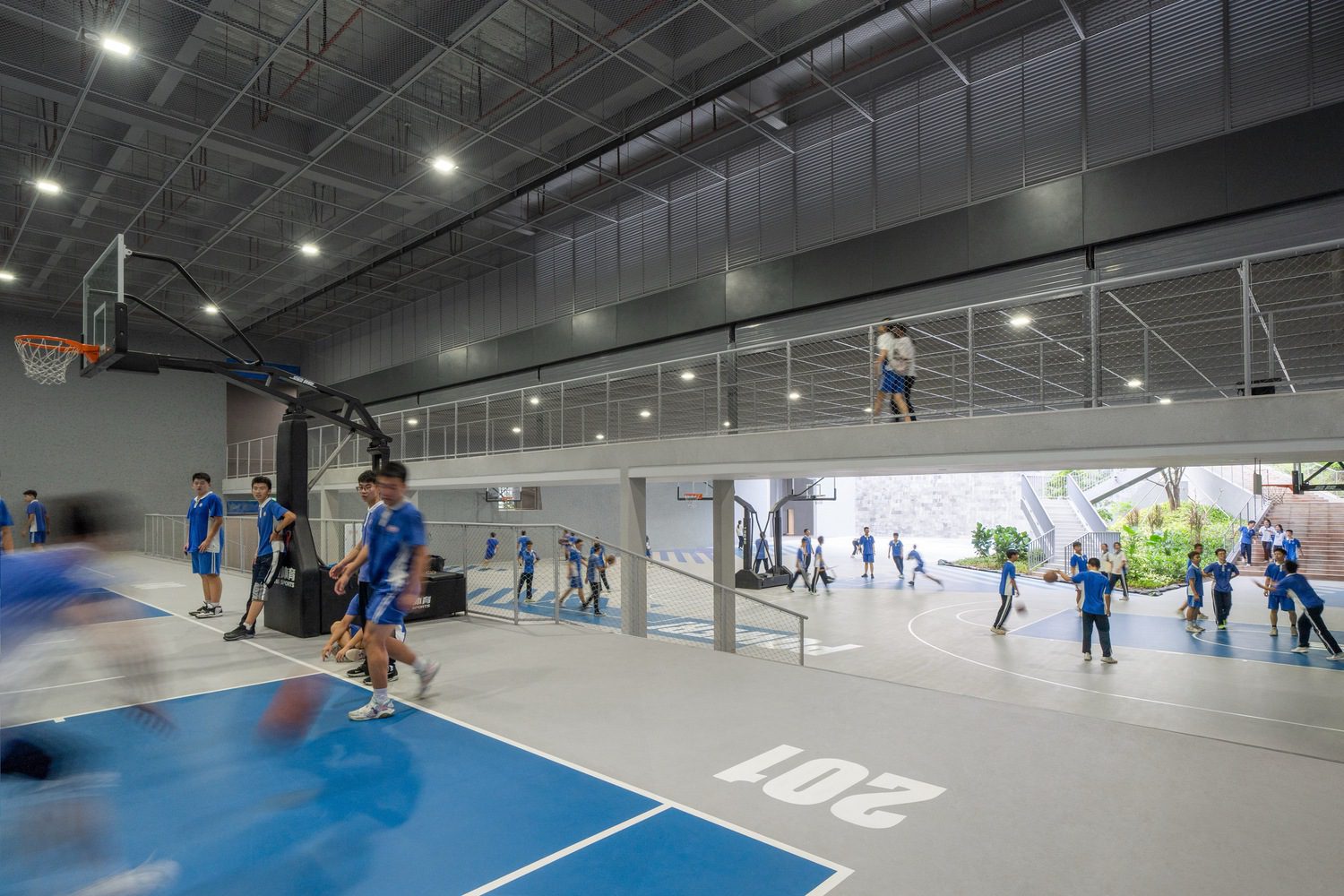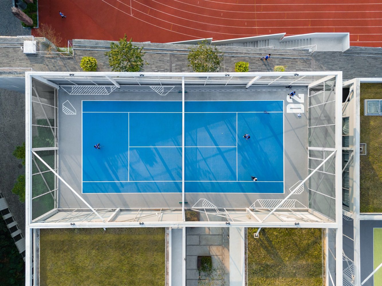 Diverse connections are naturally created during daily travel and various sports. The “sloping” roof of the new arts and sports center is composed of art (instrument vocal music and dance) classrooms and 8 outdoor sports courts between the dormitory area and teaching area. The daily cycle experience of walking between art, sports, and nature adds new perspectives and scenes to the entire campus. It also brings rich memories to young students’ campus life, as well as emotions with the place, space, and people. communicate.