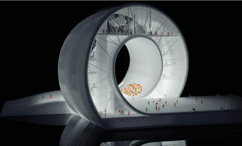 New St. Petersburg Pier by BIG (Bjarke Ingels Group): It is amazing how something so everyday and recognizable as a loop-dee-loop can amaze and inspire us. Just a subtle change makes all the difference, no longer is it the straw wrapping that we play with rather than discard, not is is become something. Now it’s heavy duty, and it’s more real to us- understandable, straw wrappings get thrown out, we usually only throw out buildings that were built in the ’70s.