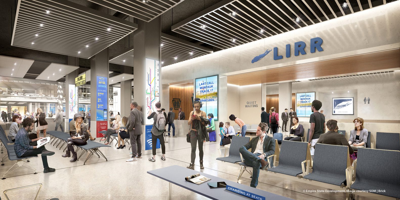 While the plan includes the refurbishment of the deteriorating underground passageways and platforms that currently serve nearly three times as many users as they were designed for, the new train hall and retail space will contain 112,000 square feet of retail space and 558,000 square feet of office space. It will also contain both ticketing and waiting areas in Amtrak and Long Island Railroad.