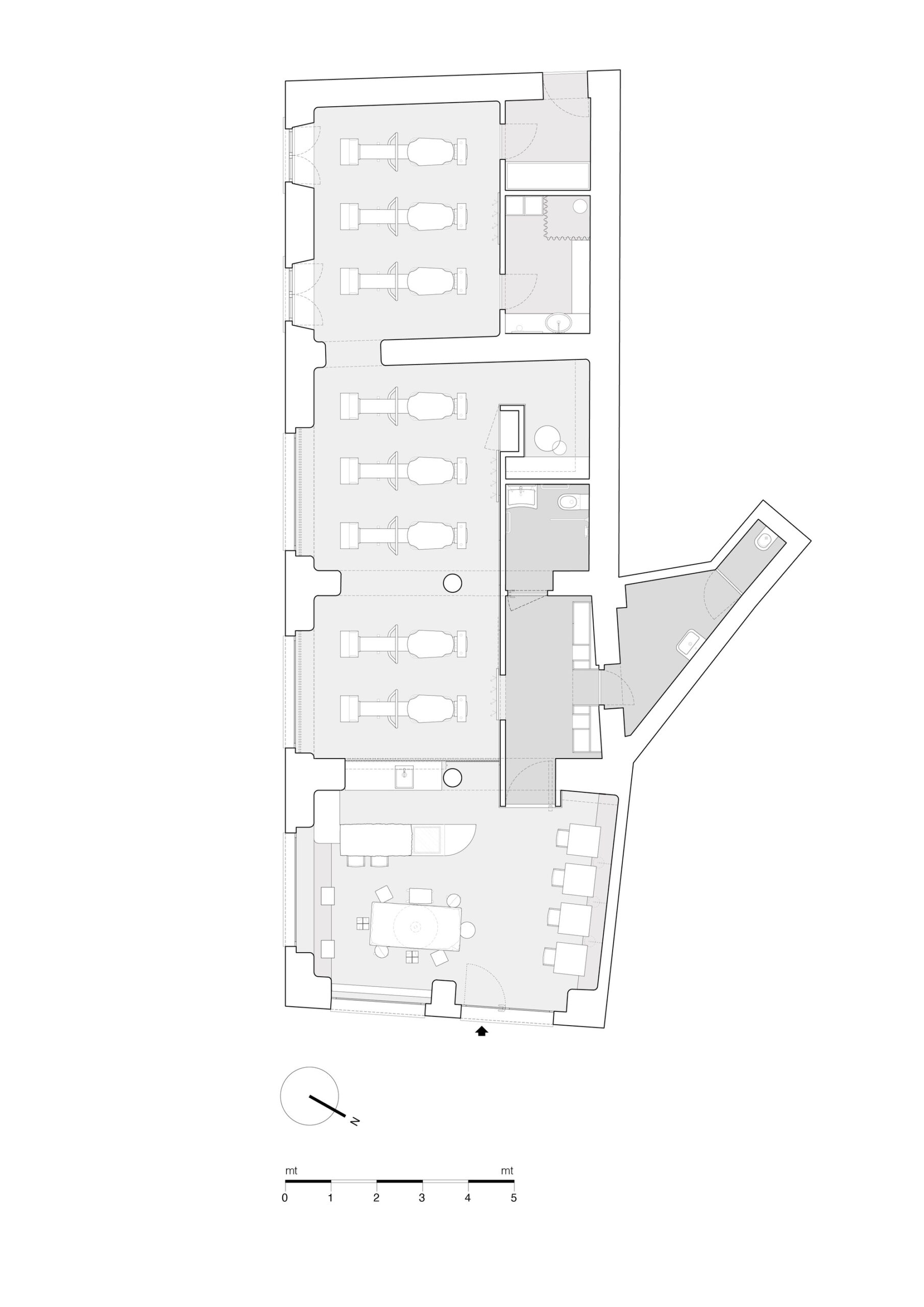 The transformation unfolds through a process of layering, where the original container and the new content overlap and interact in a respectful dialogue, striking a balance between permanence and transformation. Imperfections, raw materials, and the traces of time are not erased but enhanced, becoming integral to the space’s renewed identity. The functional program integrates discreetly, suggesting a contemporary aesthetic free of ostentation, one that inhabits the place with quiet confidence.