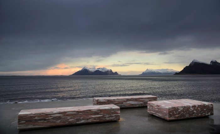 Surrounded by captivating fjords and the Norwegian Sea, the site of the new Norway landmark represents a heaven for nature lovers. By defining a clear concrete edge, the project aims to mimic the existing nature and topographic landscapes of the city. The sculpted nature of the roof acts as a frame that accentuates the beauty of the natural setting. The existing site had a historic value which gave it identity, the site was a war memorial for a submarine called “Uredd” which translates to fearless. Designed as a Norway landmark to attract tourists, the project includes public services such as toilets, a viewing deck, outdoor seatings and an amphitheater leading to the beach.