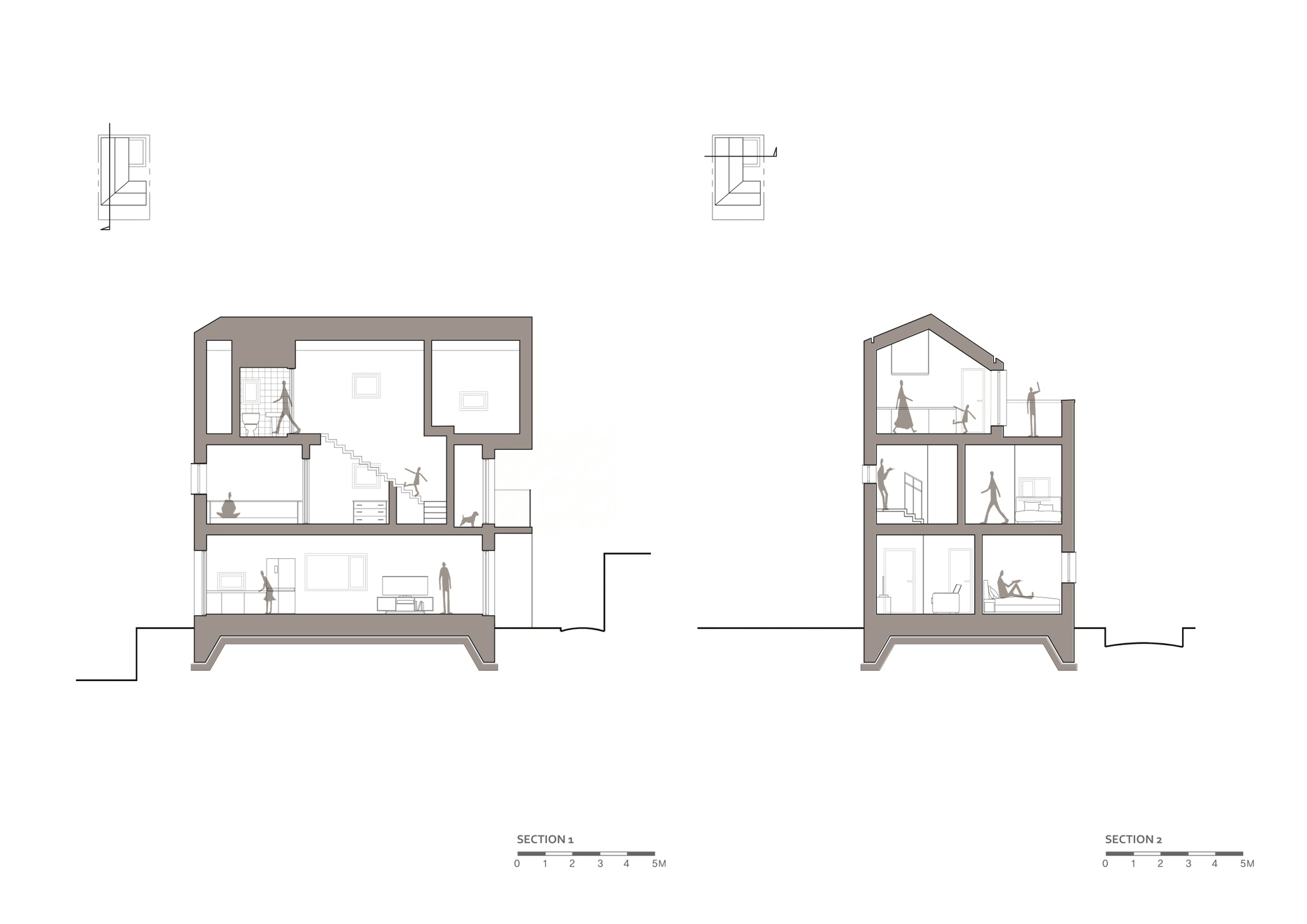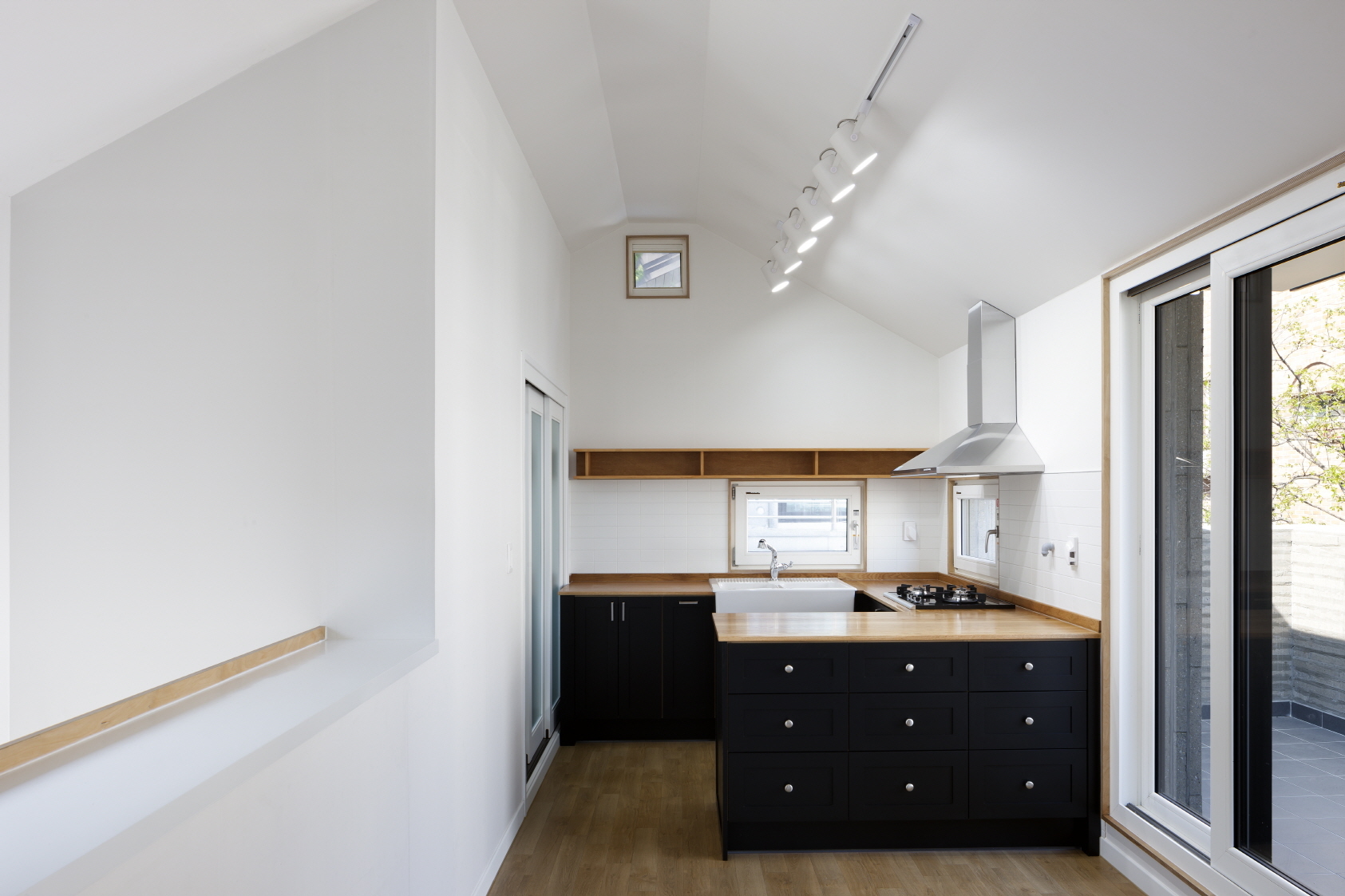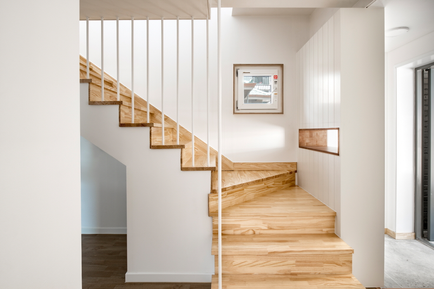 The thick rocks of Inwang mountain support the village like bolsters. Famous poet named Yoon, Dong-ju and a painter Lee Jung-seop lived here. They may have lived here briefly, but nevertheless it is a piece of history which the local Jongno-gu Office is eager to promote. A young couple came to us to build a house in this area. Mother in law was helping to raise their child because the couple both worked. In Korea, three generations often live together for child- care, which means the key to design is to secure each generations’ independence.