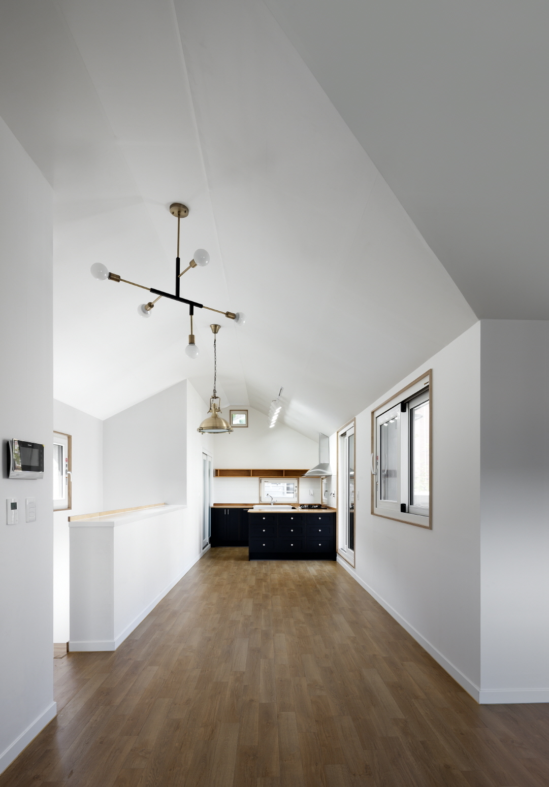 The road leading to the site was too narrow for automobile’s access. This would cause extra work in the construction phase. There were also stairs on the access path, and not much traffic. This gave us an idea to use the leading alley to the site as an extension of court-yard(madang). The design scheme needed to incorporate issues of two generations coexisting in a single house, an island-like geographical location and a narrow alley.