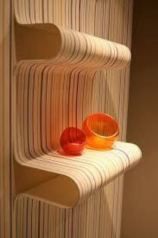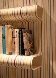 These acrylic sheets appear to come alive, bulging and rolling up against the wall with the same wallpaper. The shelves are sold together with specially designed and uniquely patterned wallpaper.