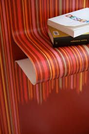 Off the wall is wallpaper with a third dimension. The concept is derived from 2-dimensional wallpaper transformed into 3-dimensional shapes that form shelves and lamp shades.