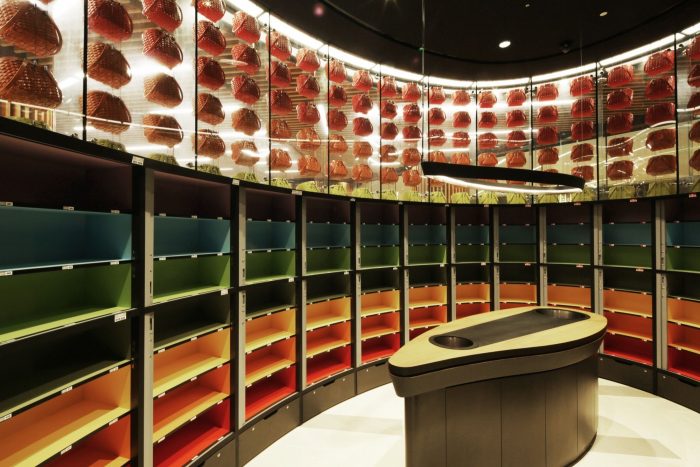 All greenery is supported by automated irrigation system and advanced-level drainage system. Within the indoor lobby, one major design feature is a circular room that serves dual functions as a museum wall, as well as a locker room for three hundred people. Rainbow-inspired colors were incorporated into the museum wall where marketing message are placed into colored baskets, while the locker cabinets shows arrays of colors.