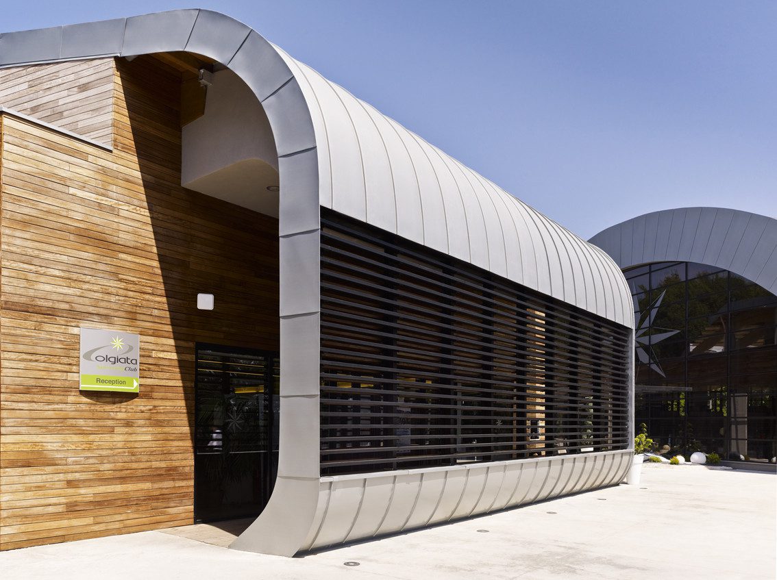 The Olgiata Sporting Club is located inside the woods of a garden city at the border of Rome, Italy The building is made up of three different pavilions connected to each other. The central one is the administrative center and contains the entrance, where the main staircase and the connections are. Through it the visitor can access the locker rooms at the lower level and then the two pavilions.