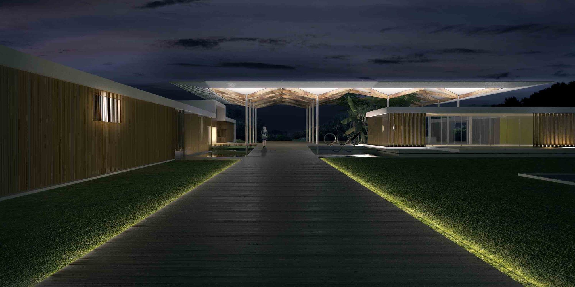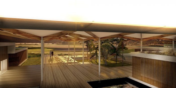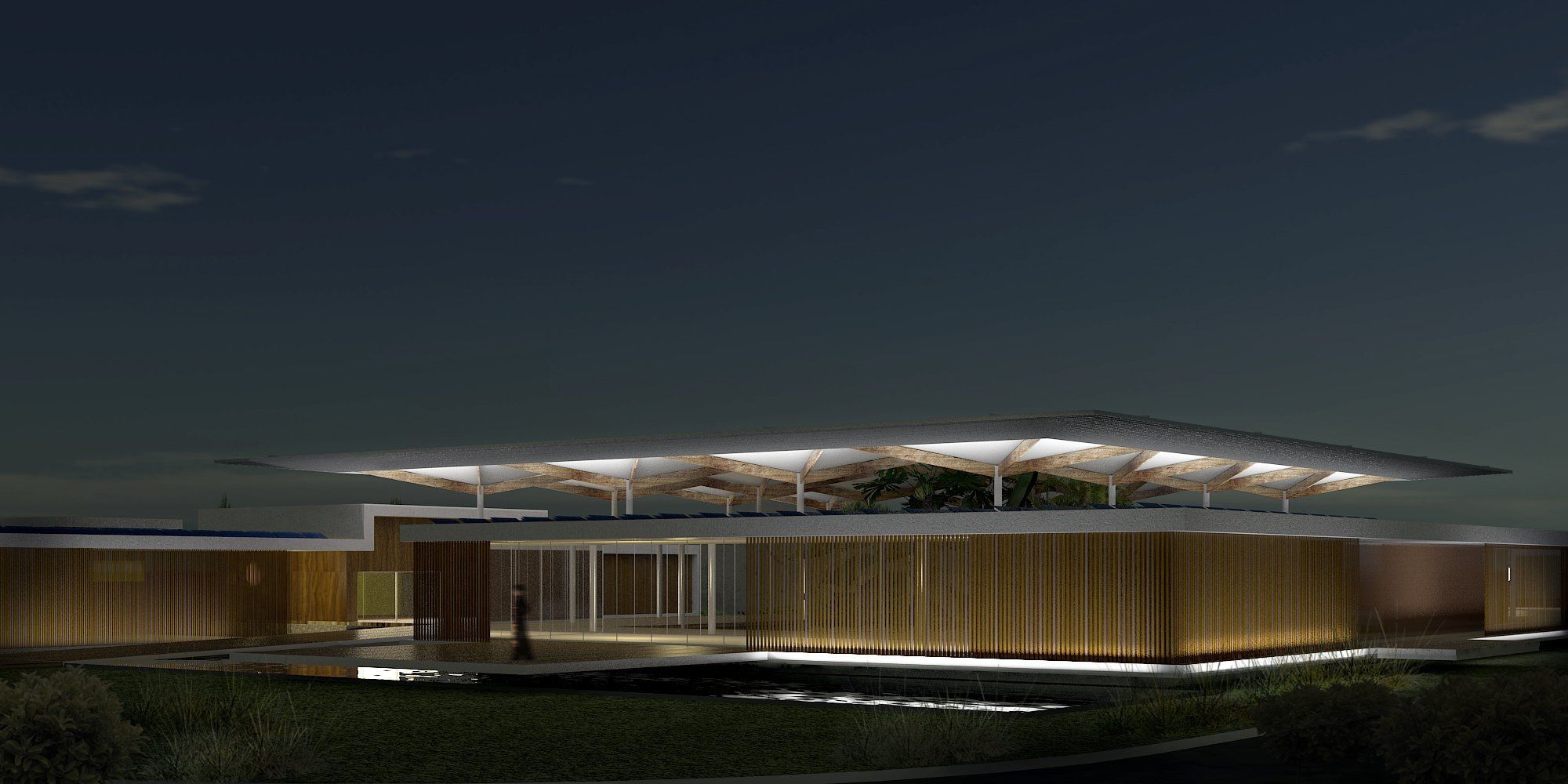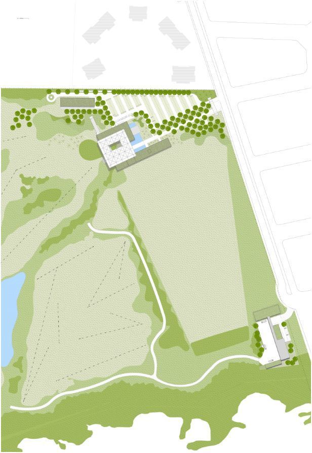 The resumption of golf at the Olympic Games in Rio de Janeiro in 2016 suggests the development of a project that reconciles this sports practice to the landscape of the rich ecosystem of the resting, impressing a Carioca identity worldwide. In order to integrate the architecture with the local nature and the winding course of the game, we propose a topographic construction mimicked in the environment, designed with the geological, aquatic, and vegetal environment, in search of ecological compatibility. Arched deployment refers to swing movement. The form created from this movement was timely to the architectural solution in the definition of the visuals, flows, and sectorization of the program. The same form delimits the external access and also the internal flow of people in relation to the golf course and driving range. We propose the layout of the program in this arch, leaving a generous space to develop the landscaping project while at the same time intensifying the public’s relationship with the golf course.